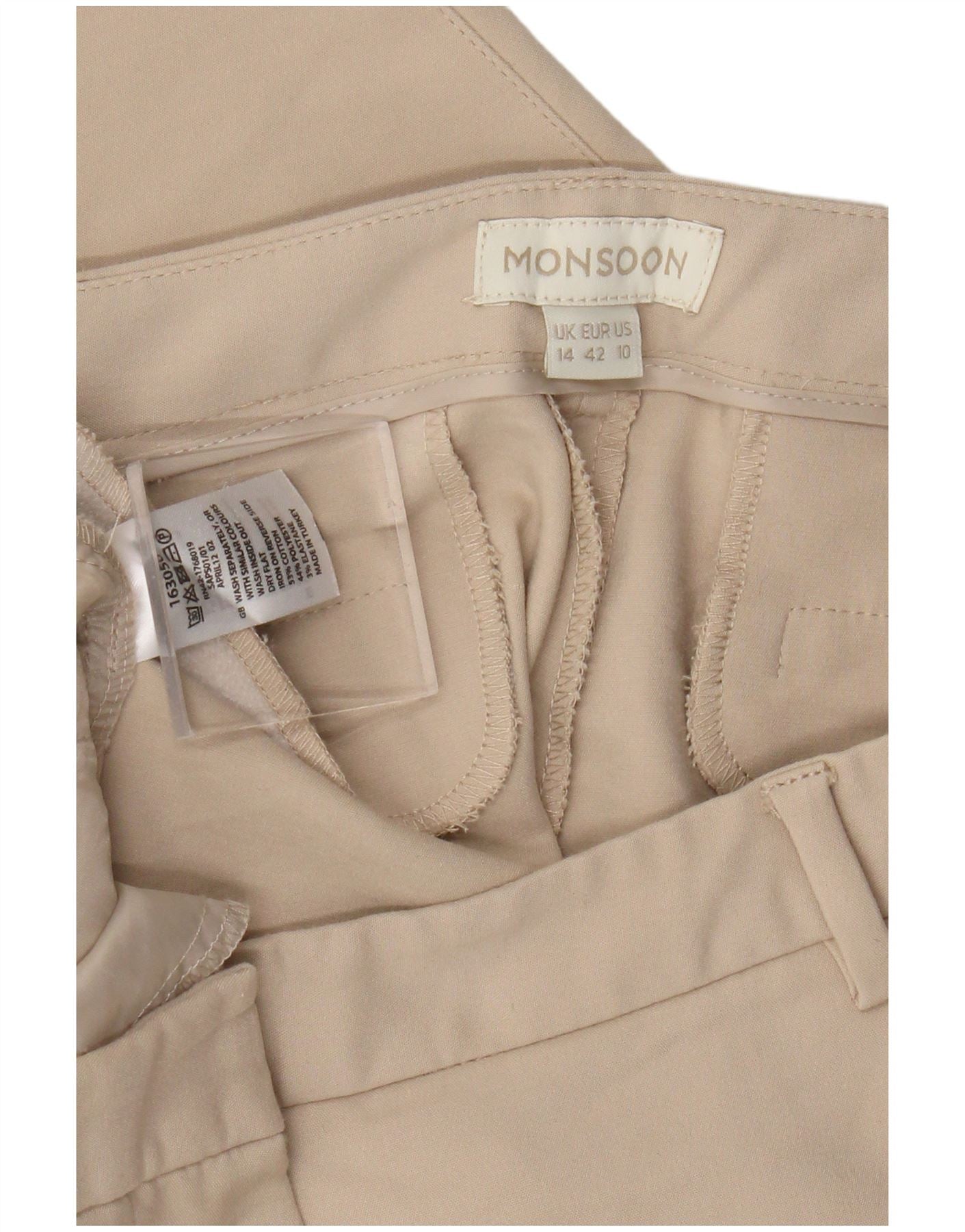 Monsoon Womens Straight Cropped Trousers UK 14 Medium W32 L24 Beige Cotton