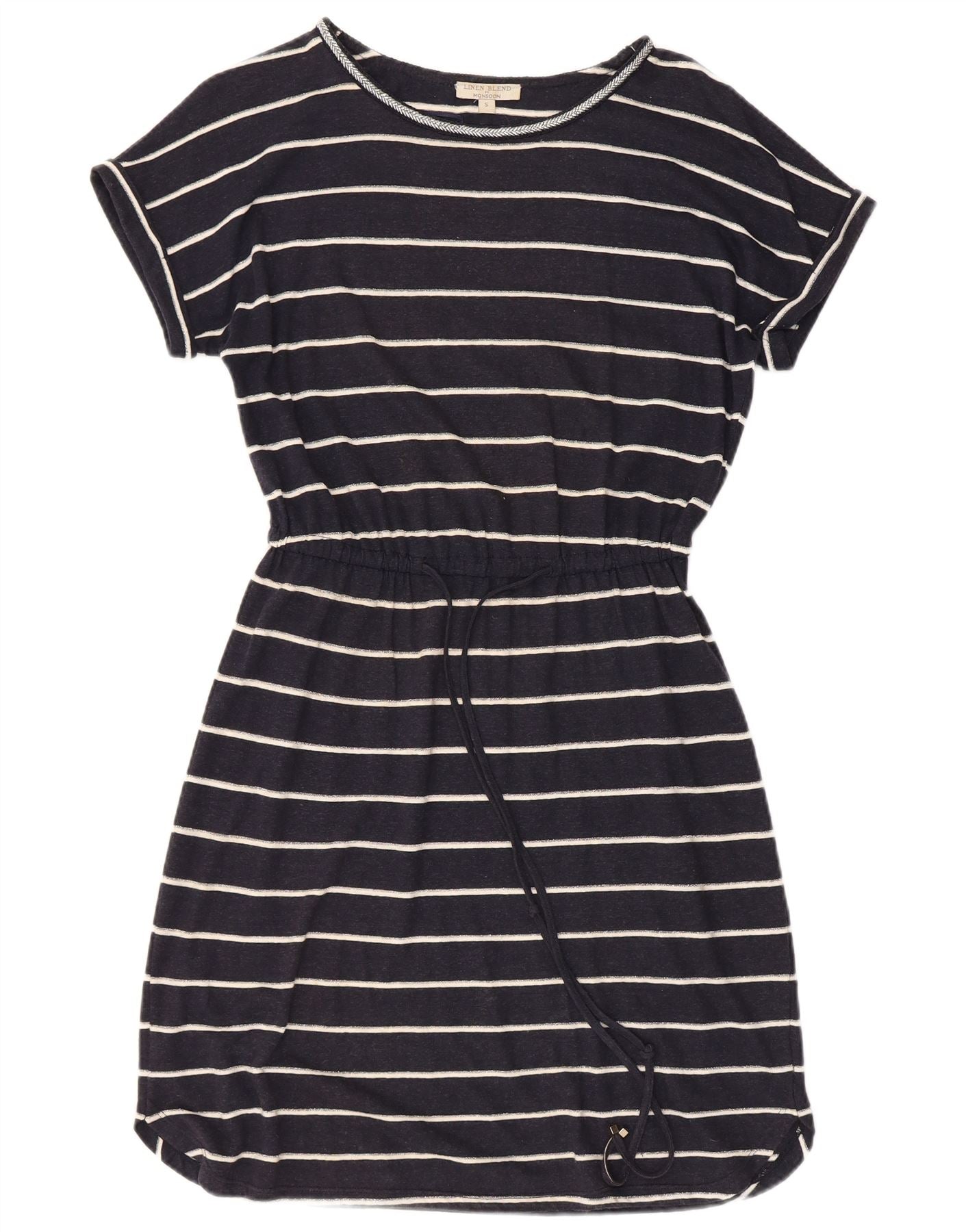 MONSOON Womens T-Shirt Dress UK 10 Small Navy Blue Striped Linen