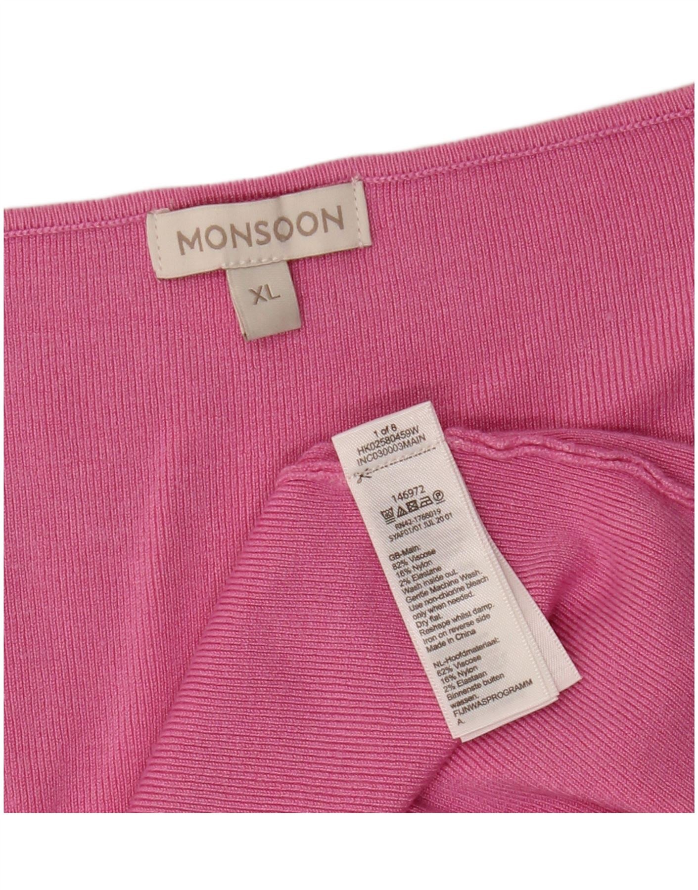 MONSOON Womens V-Neck Jumper Sweater UK 18 XL Pink Viscose