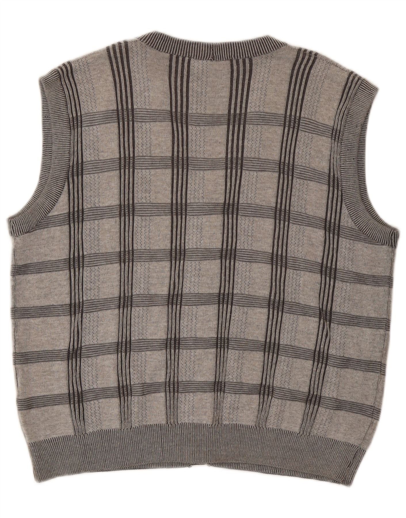 MONTECHIARO Mens Sleeveless Cardigan Sweater XL Grey Check