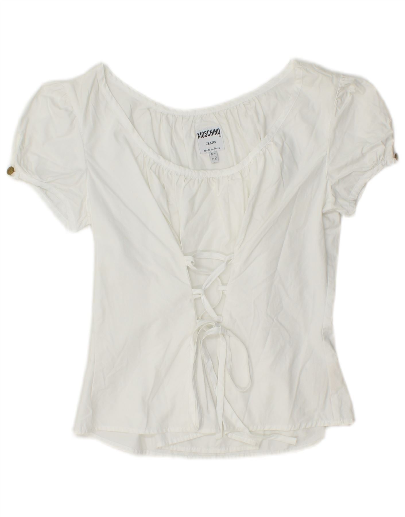 MOSCHINO Womens Crop Top IT 42 Medium White Cotton