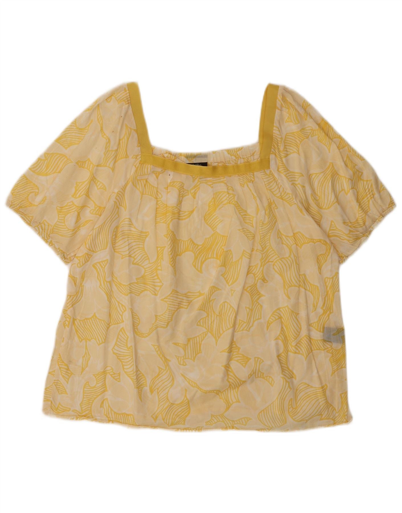 MOSSIMO Womens Crop Blouse Top UK 16 Large Yellow Floral Cotton