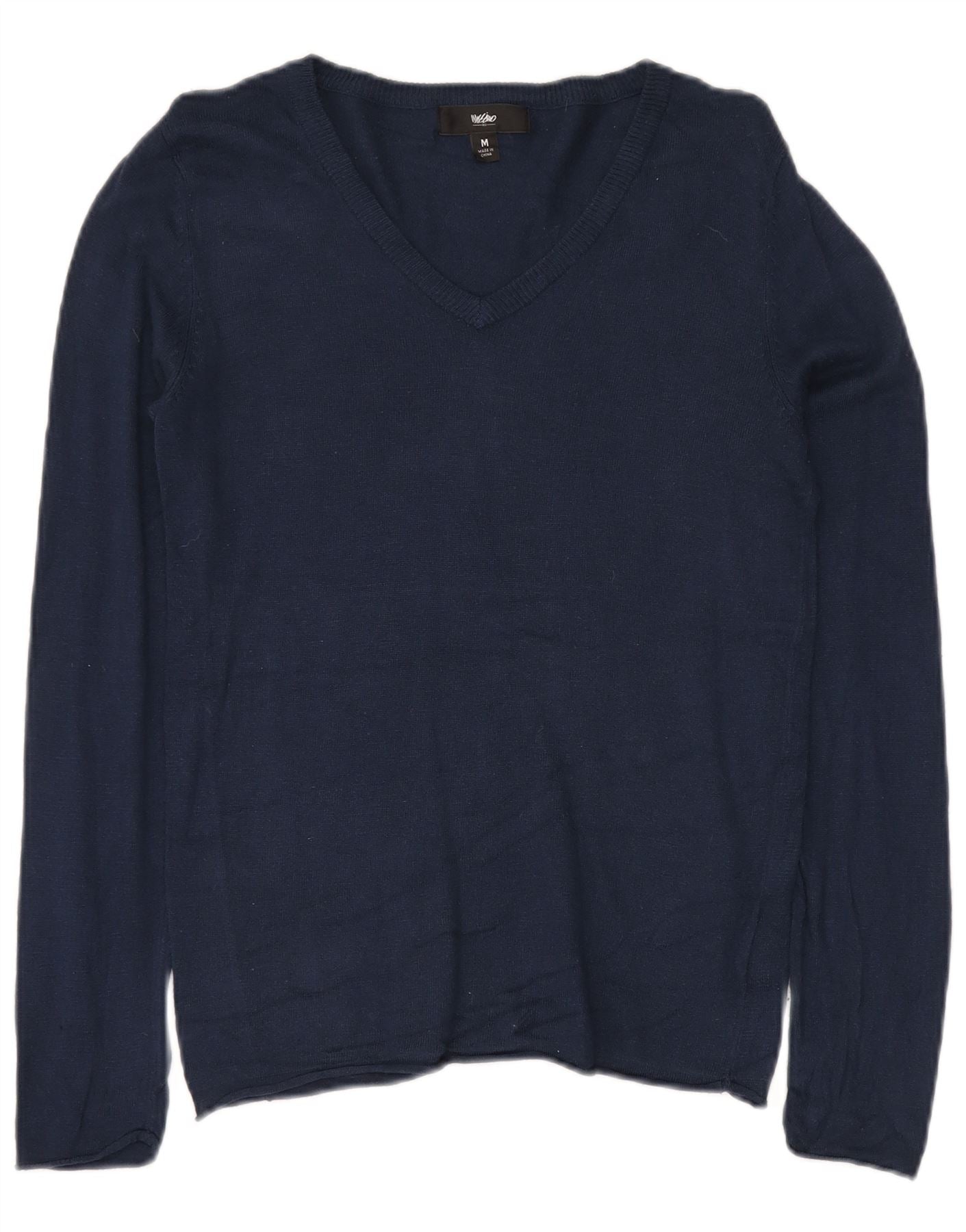 MOSSIMO Womens V-Neck Jumper Sweater UK 12 Medium Navy Blue Nylon