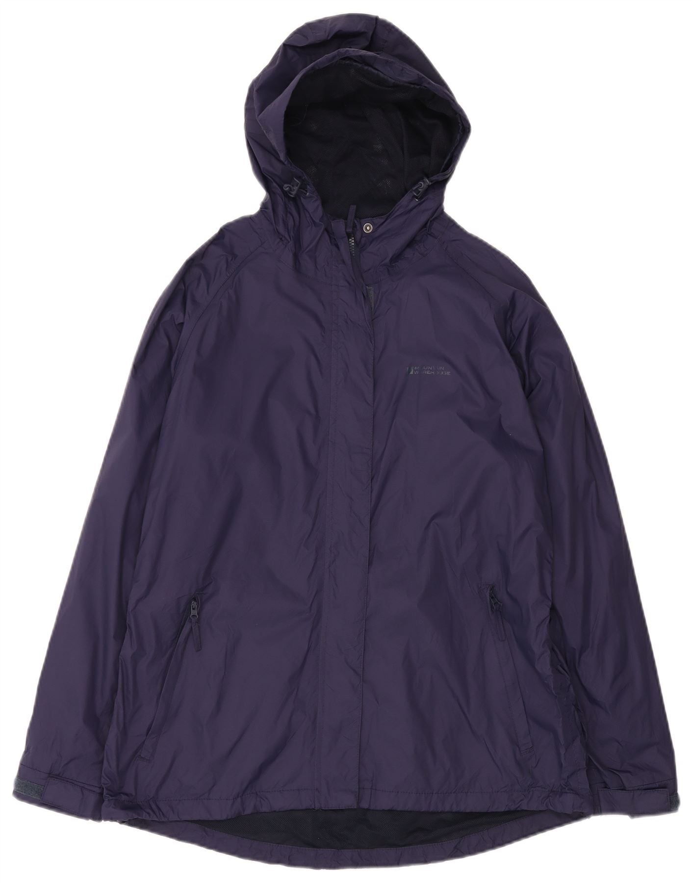 - AI Description: This Mountain Warehouse mens waterproof jacket is crafted from durable navy blue nylon. Its woven fabric offers reliable protection against the elements. The collared neckline and full zip closure provide a secure fit. A practical hood adds extra coverage. Long sleeves and a regular fit ensure comfort and ease of movement. Functional pockets and a subtle brand logo complete the design.