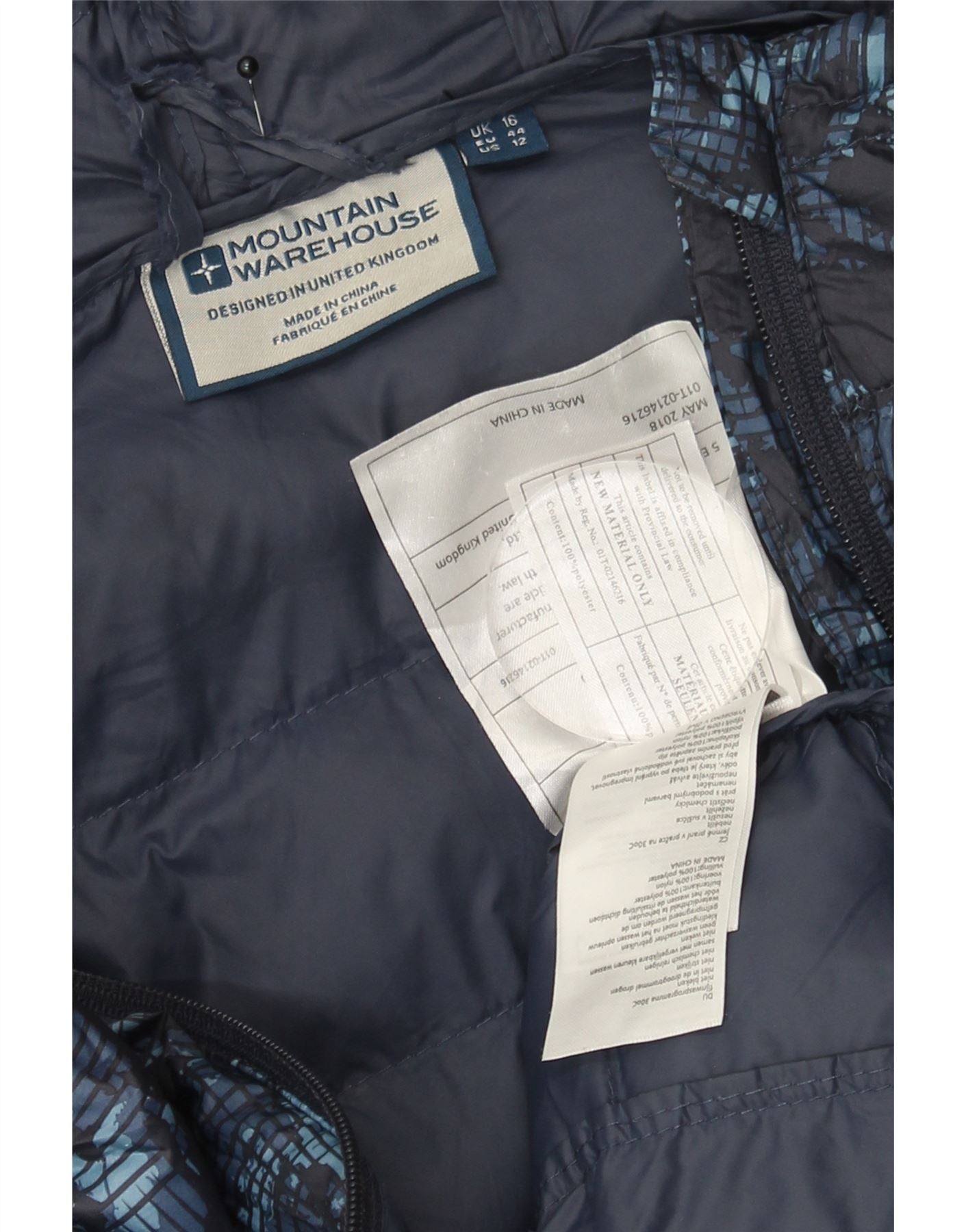 MOUNTAIN WAREHOUSE Womens Padded Jacket UK 16 Large Navy Blue Camouflage
