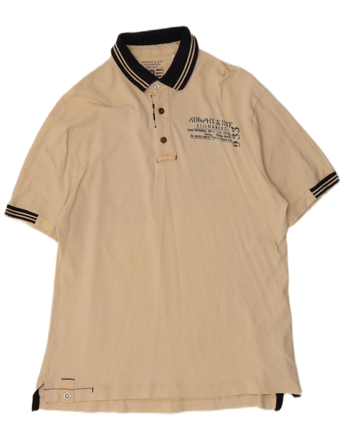 MURPHY & NYE Mens Sailmakers Graphic Polo Shirt 2XL Beige Cotton