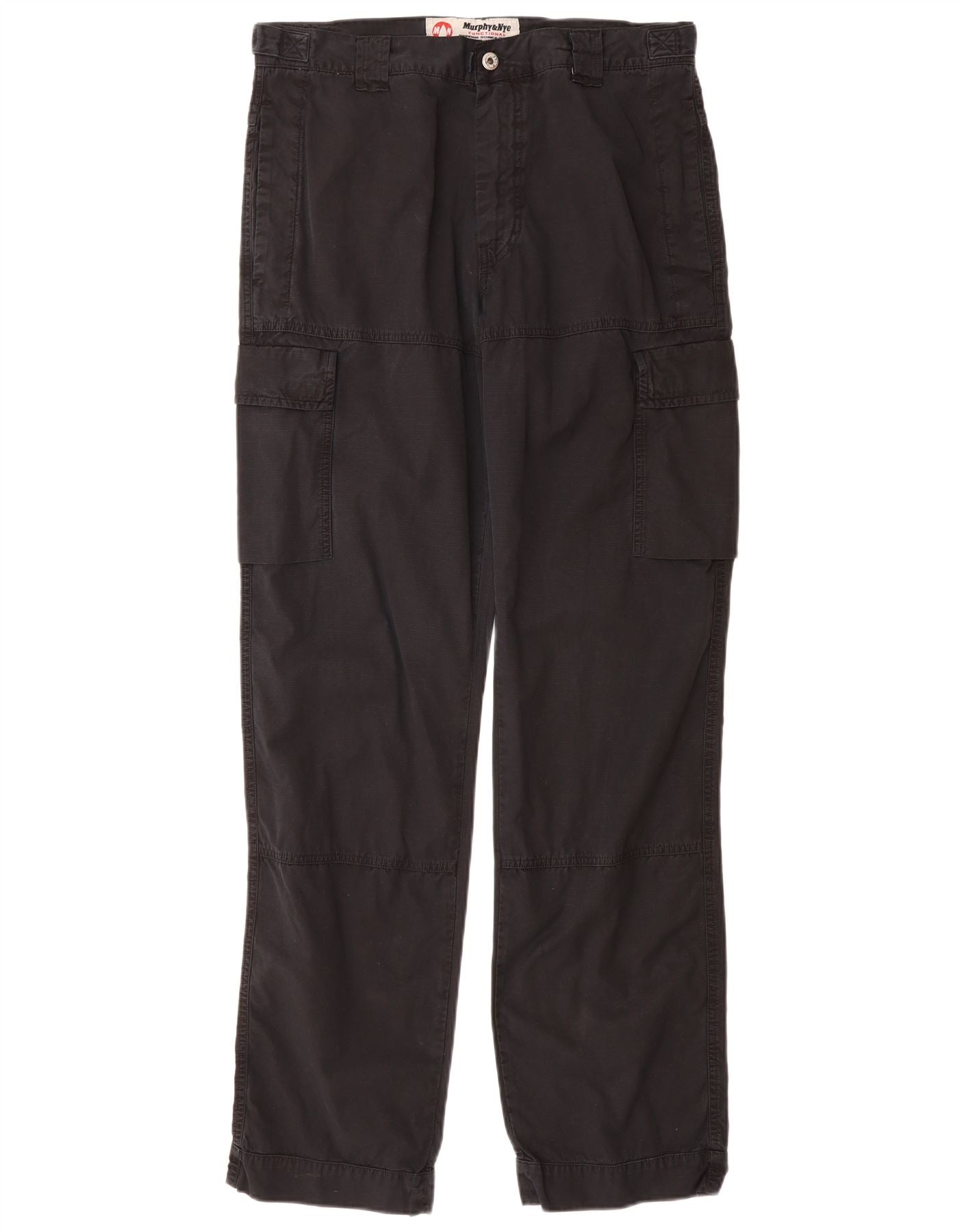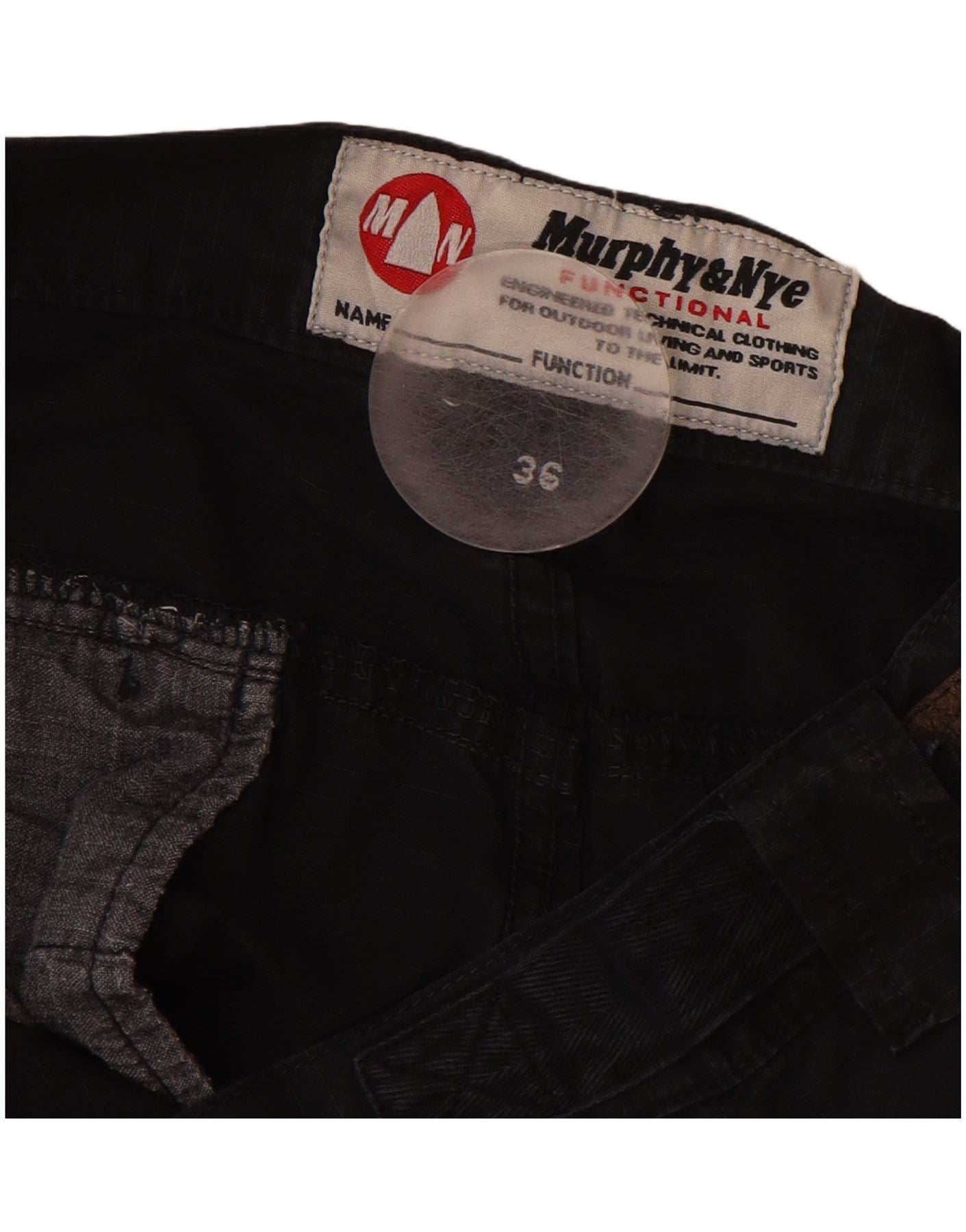 MURPHY & NYE Mens Straight Cargo Trousers W36 L35 Black Cotton