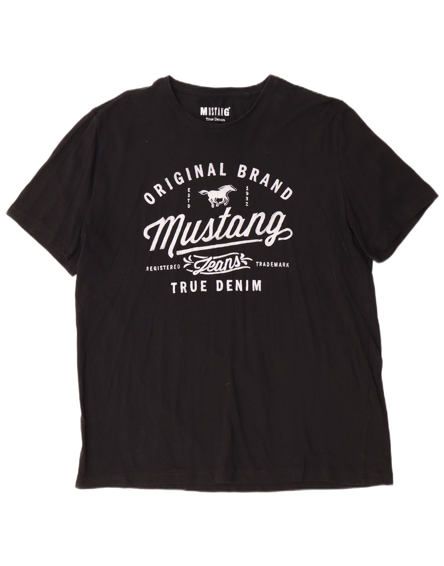 MUSTANG Mens Graphic T-Shirt Top XL Black Cotton