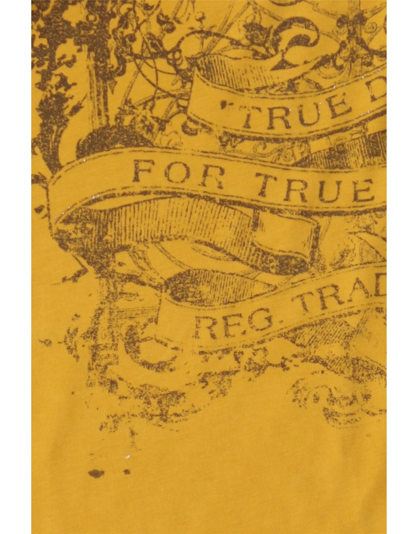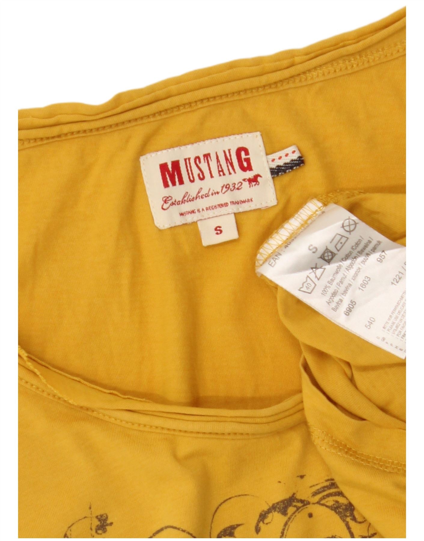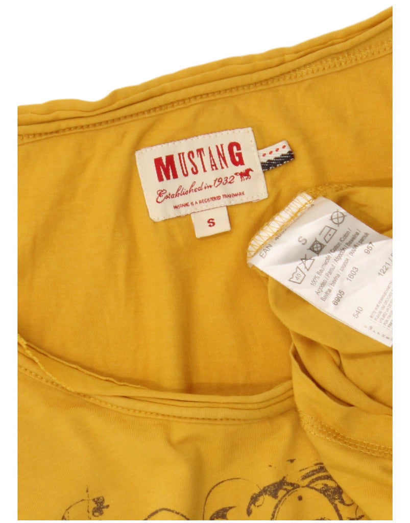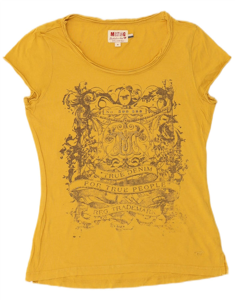 MUSTANG Womens Graphic T-Shirt Top UK 10 Small Yellow Cotton