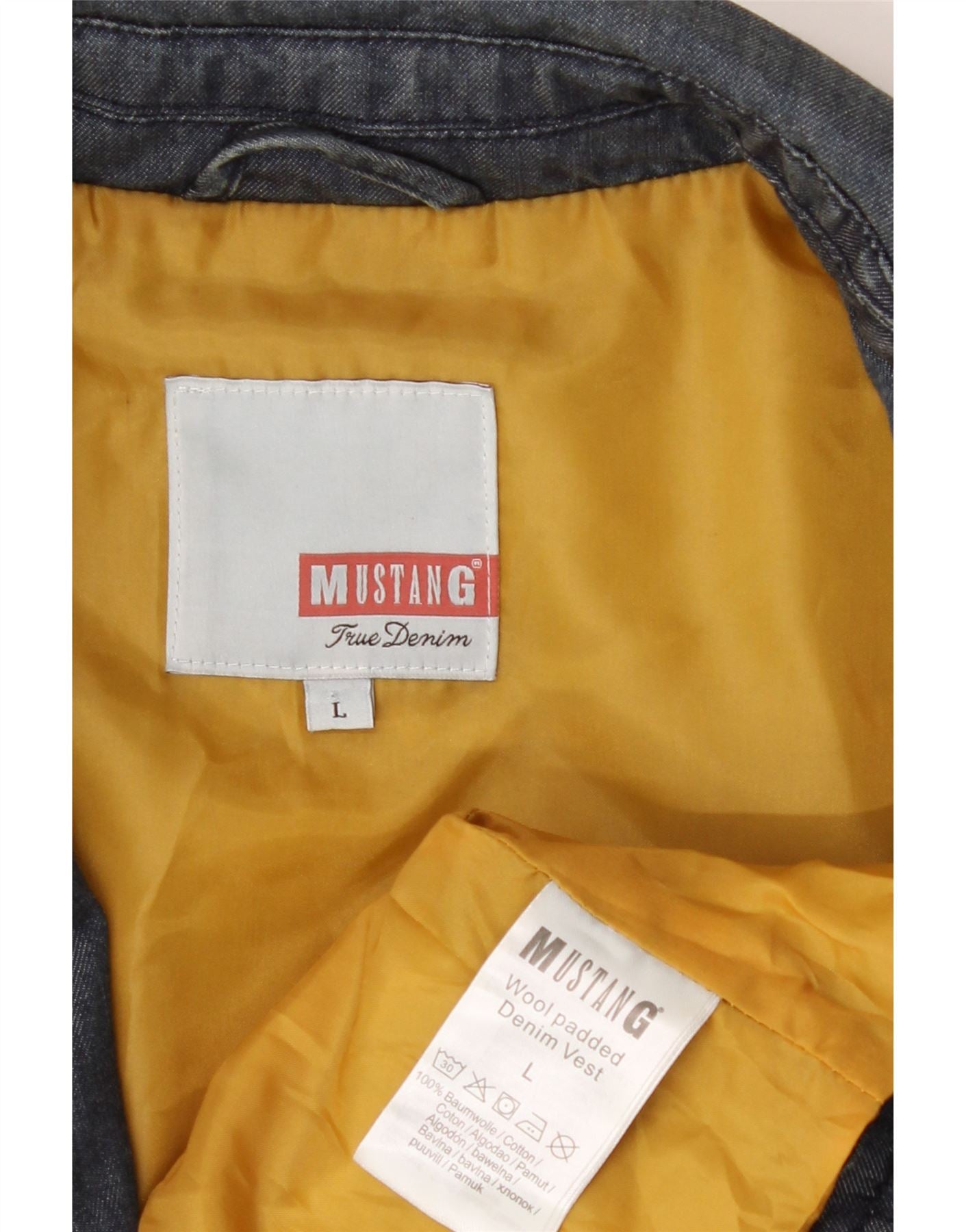 MUSTANG Womens Padded Denim Gilet UK 16 Large Navy Blue Argyle/Diamond