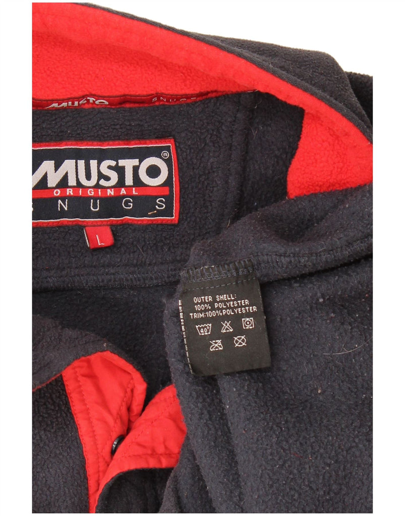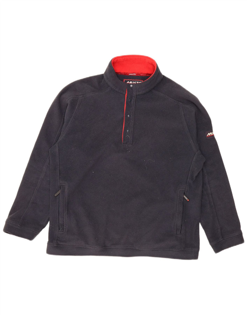 MUSTO Mens Button Neck Fleece Jumper Large Navy Blue Polyester
