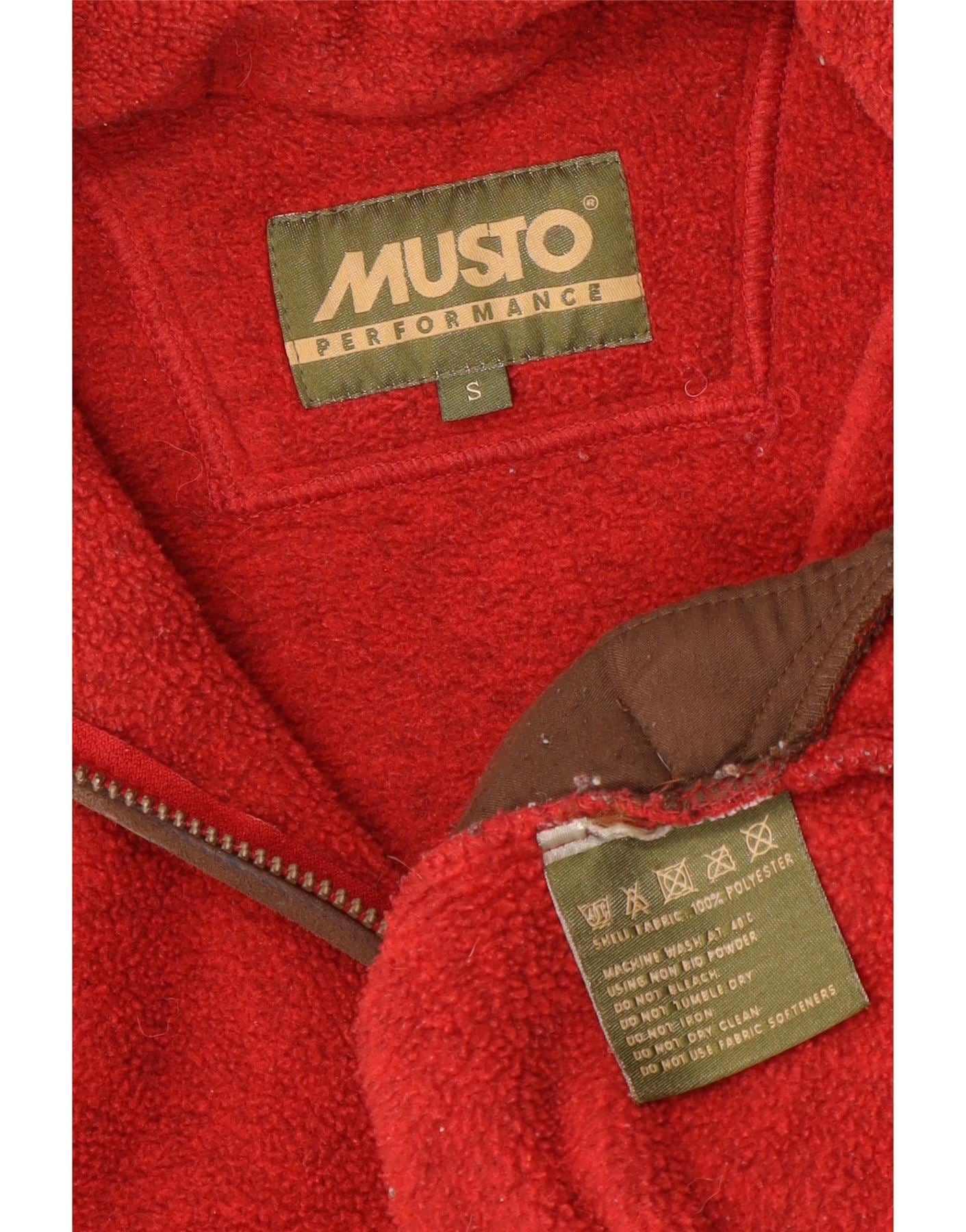 MUSTO Mens Zip Neck Fleece Jumper Small Red Polyester