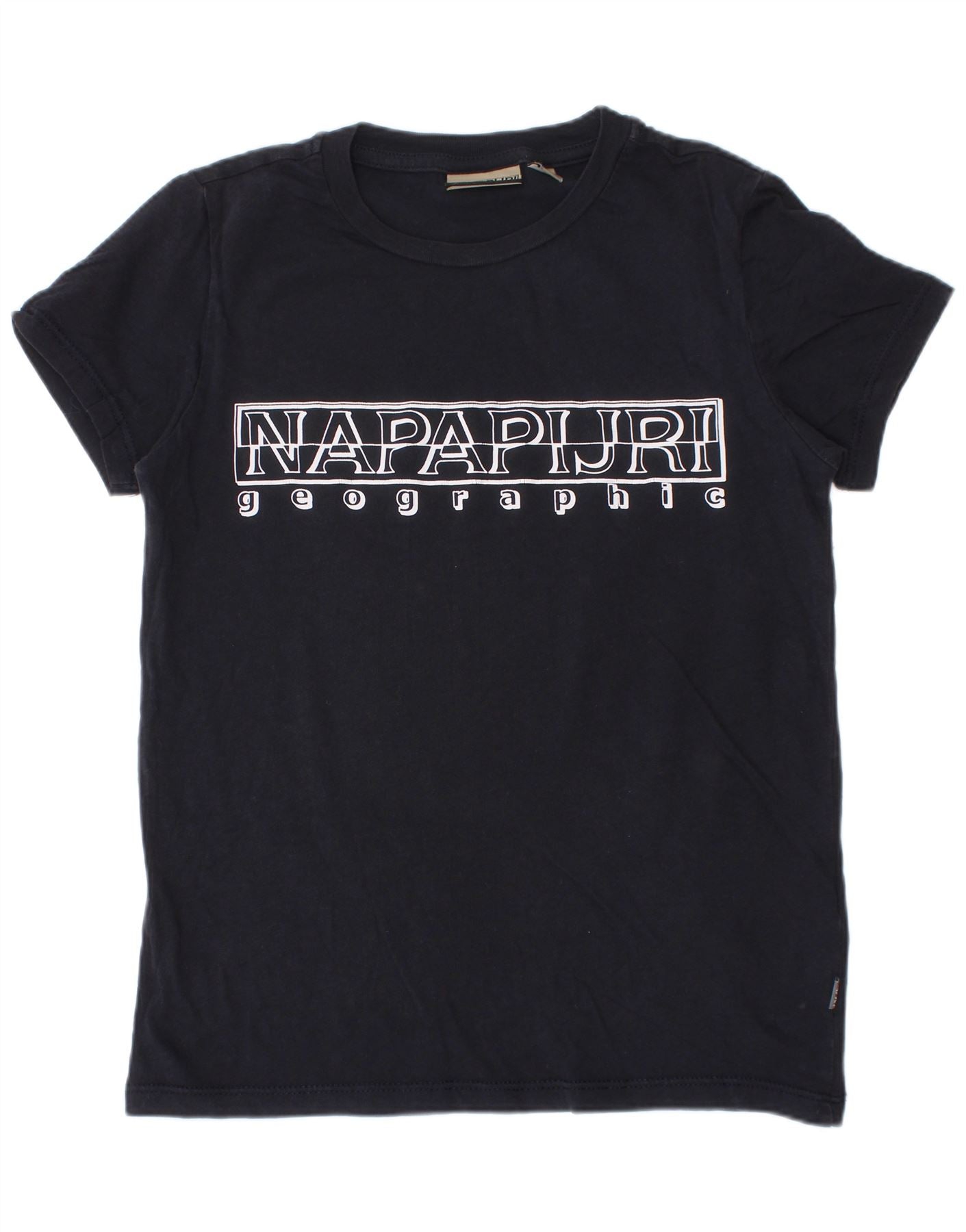 NAPAPIJRI Boys Geographic Graphic T-Shirt Top 7-8 Years Navy Blue Cotton