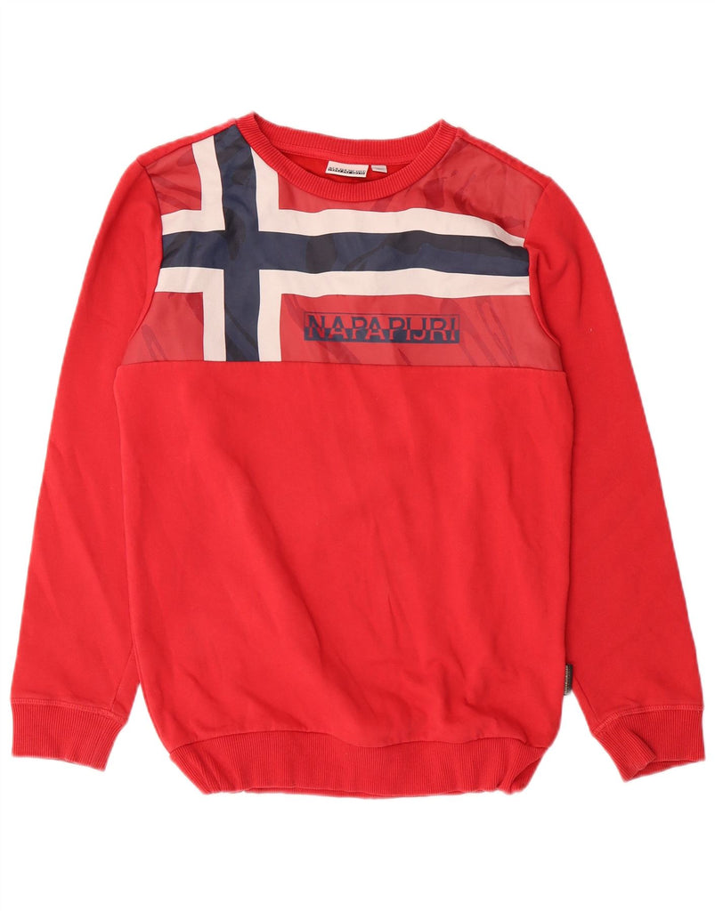 NAPAPIJRI Boys Graphic Sweatshirt Jumper 13-14 Years Red Colourblock