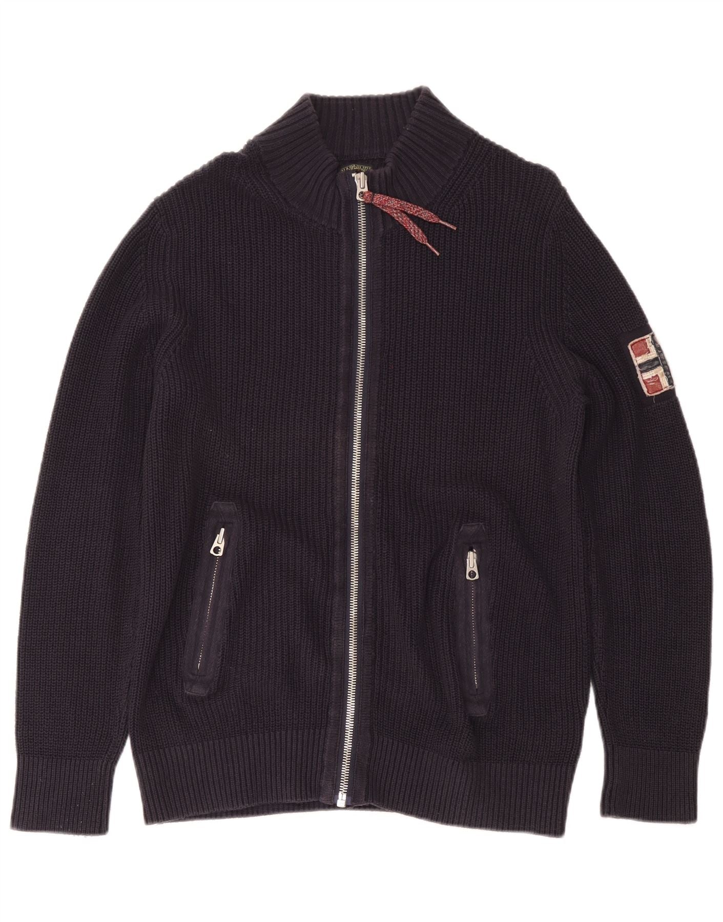 NAPAPIJRI Mens Geographic Cardigan Sweater Large Navy Blue Cotton