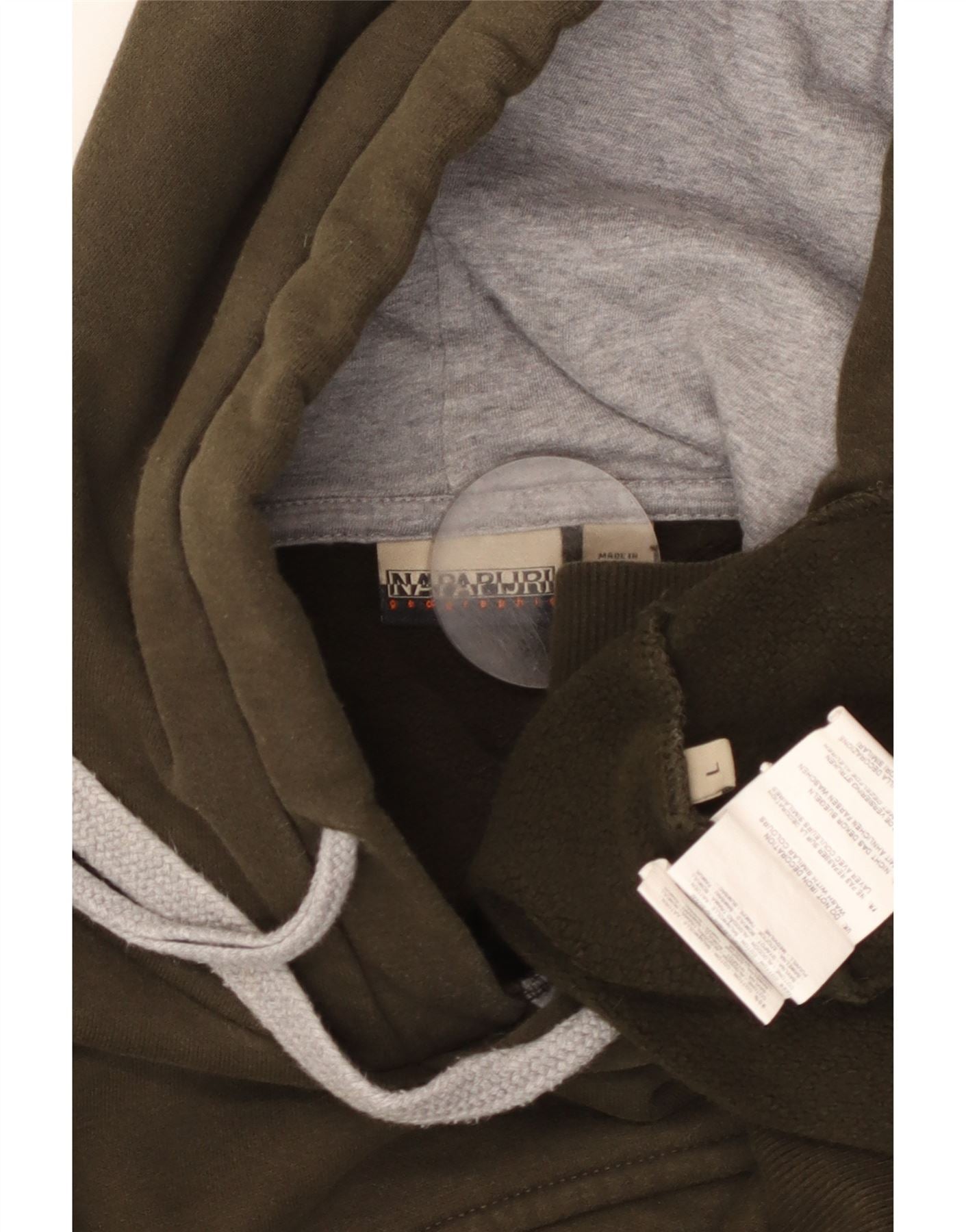 NAPAPIJRI Mens Geographic Graphic Hoodie Jumper Large Khaki Cotton