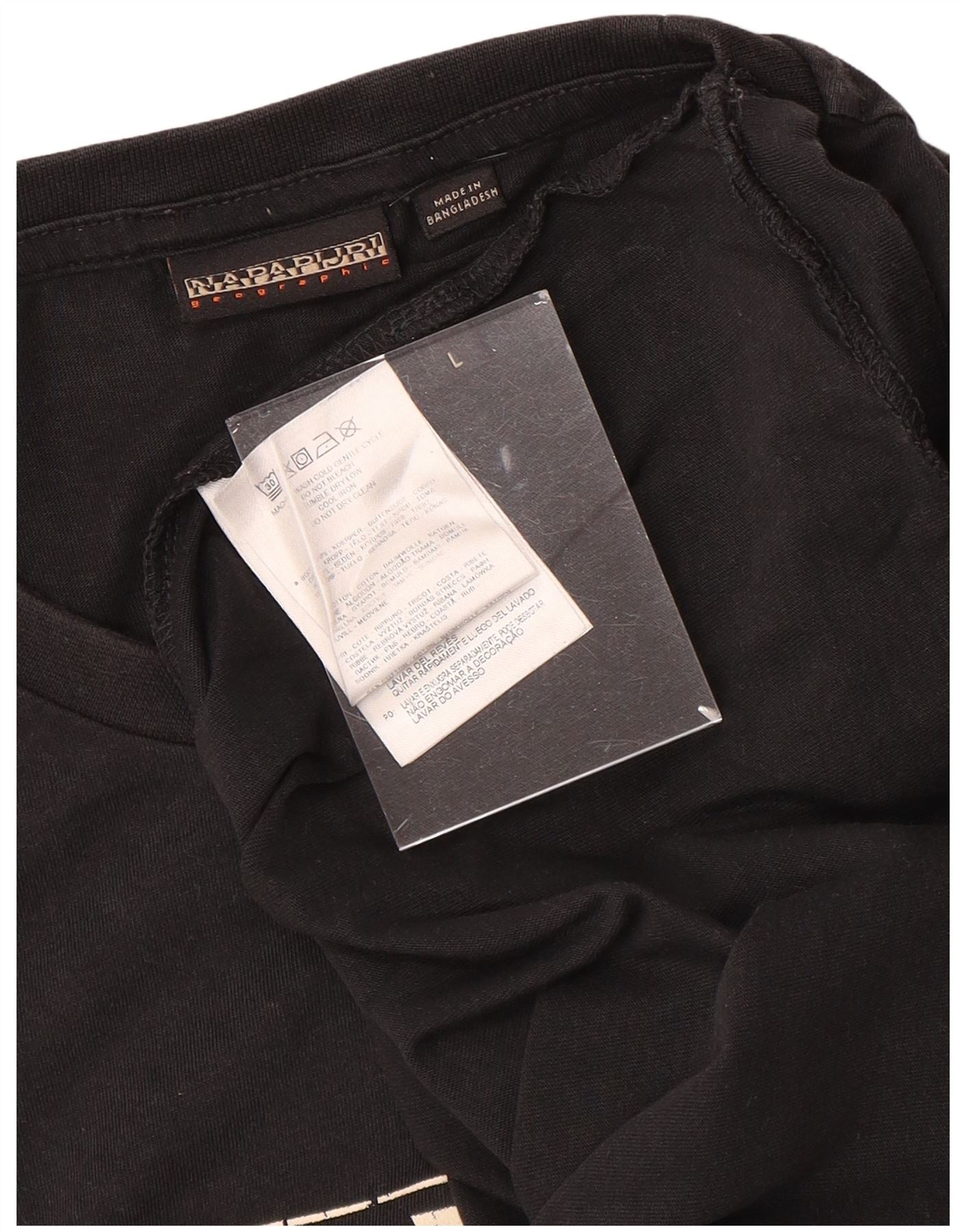 NAPAPIJRI Mens Geographic Graphic T-Shirt Top Large Black Cotton