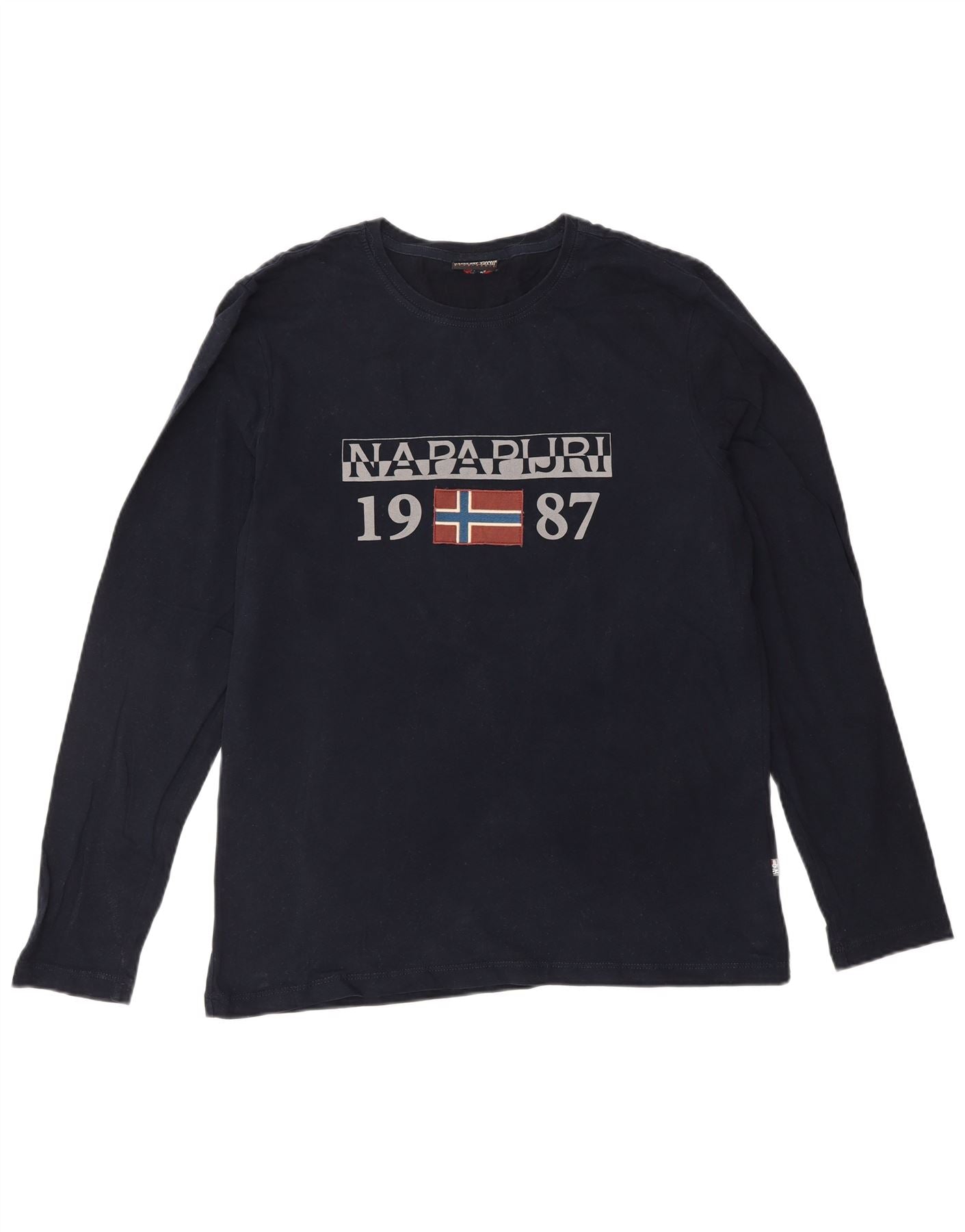 NAPAPIJRI Mens Geographic Graphic Top Long Sleeve Medium Navy Blue Cotton