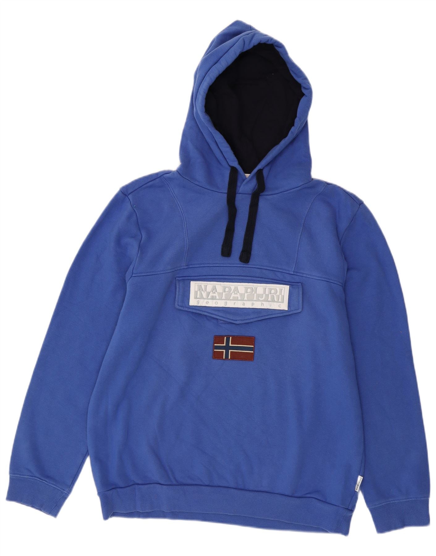 NAPAPIJRI Womens Graphic Hoodie Jumper UK 18 XL Blue Cotton
