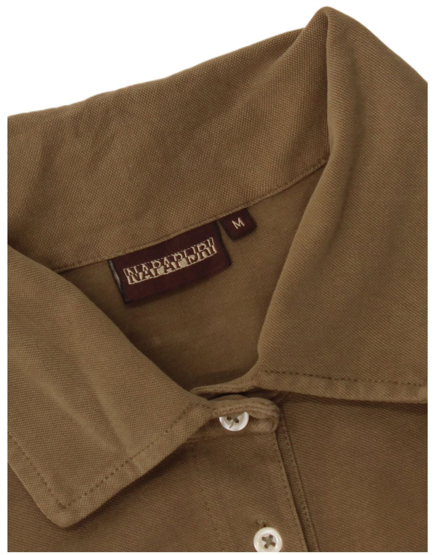 NAPAPIJRI Womens Graphic Polo Shirt UK 12 Medium Khaki