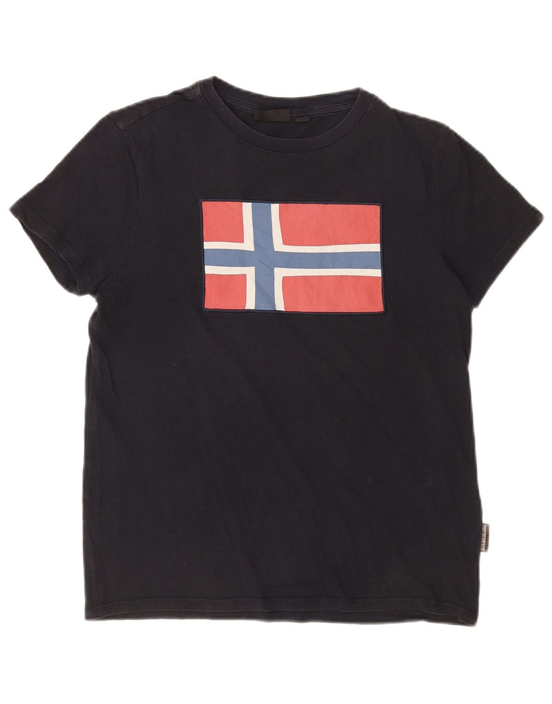 NAPAPIJRI Womens Graphic T-Shirt Top UK 10 Small Navy Blue