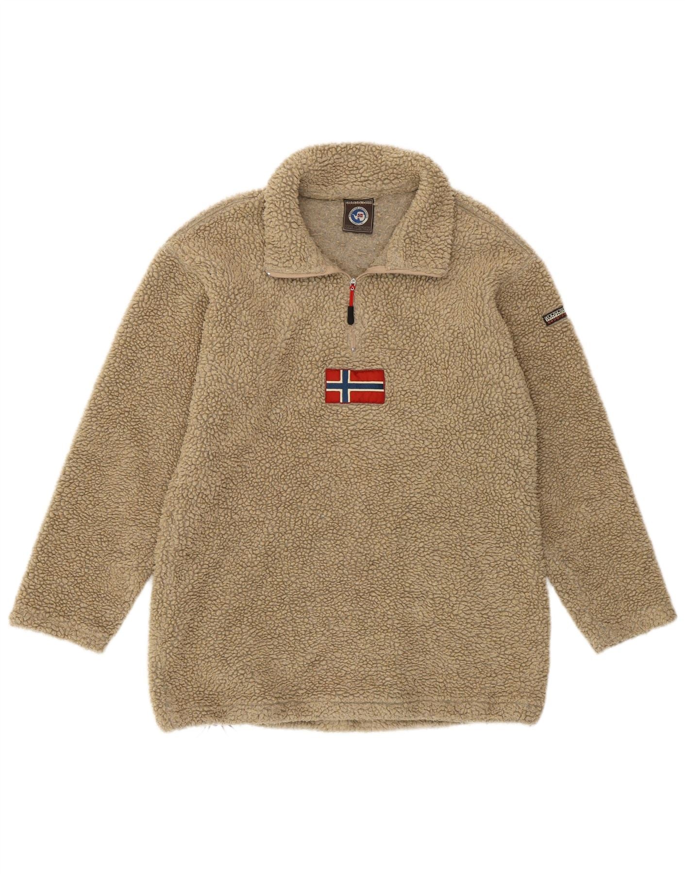 Napapijri Womens Graphic Zip Neck Fleece Jumper Large Beige Polyacrylic