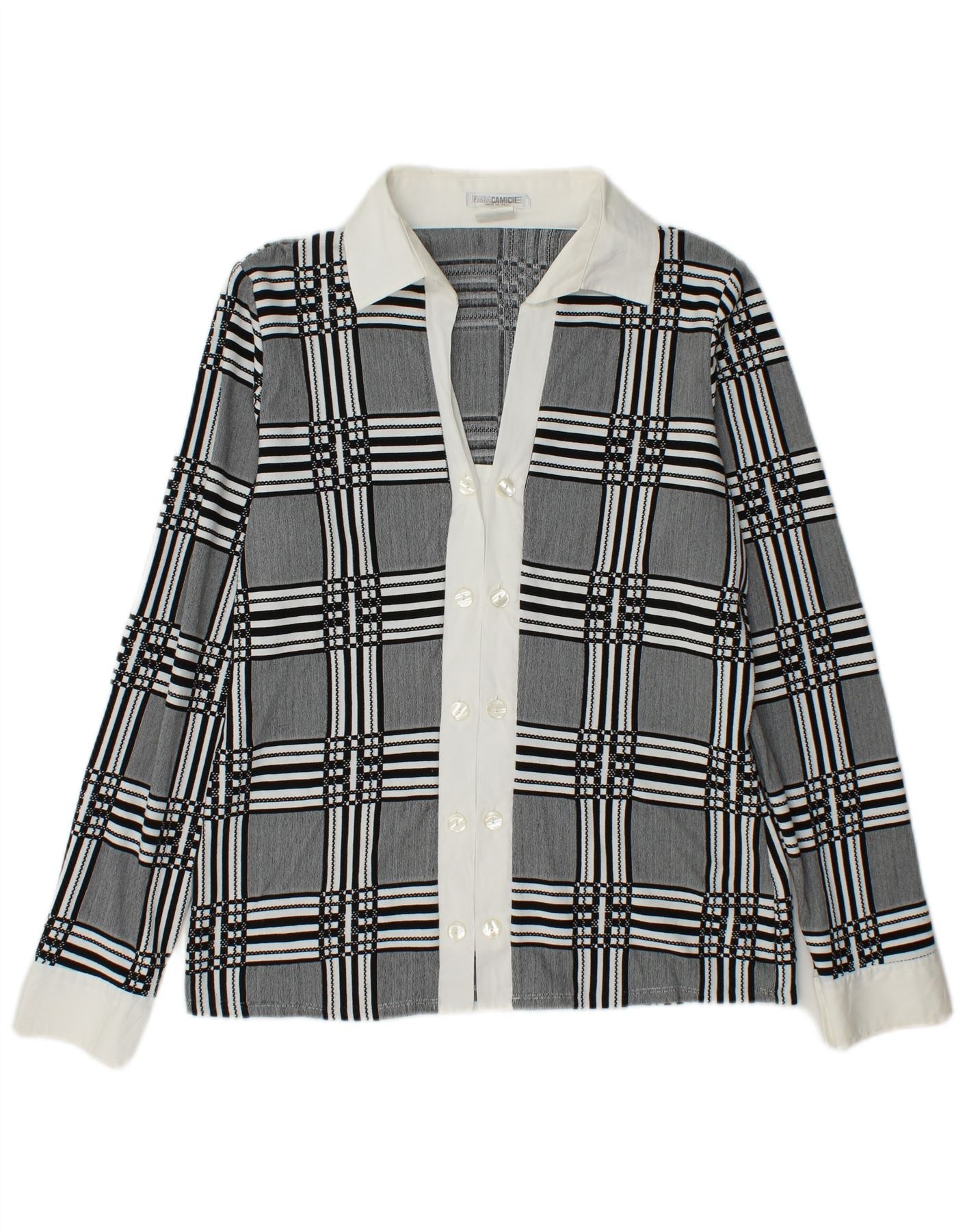 NARACAMICIE Womens Double Breasted Shirt Blouse UK 14 Medium Grey Check