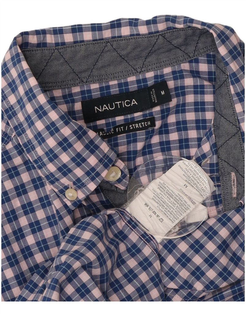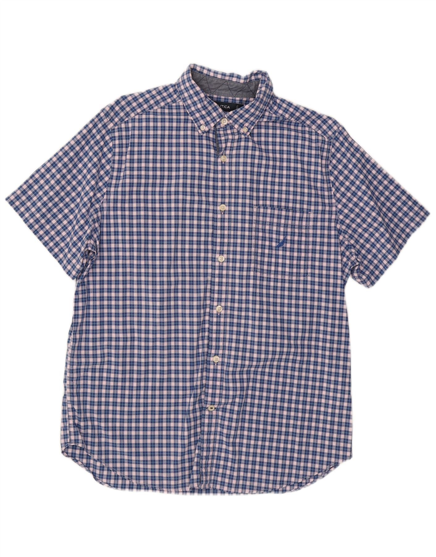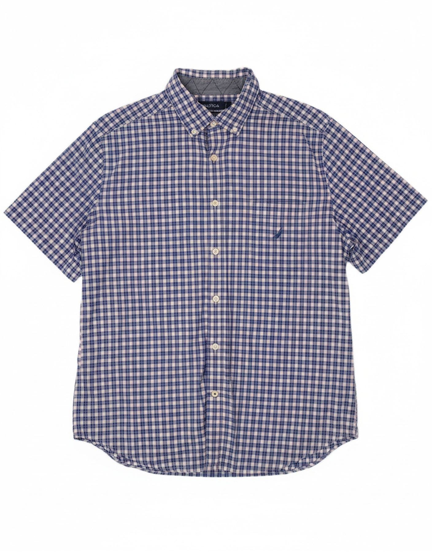 NAUTICA Mens Classic Fit Short Sleeve Shirt Medium Blue Check Cotton