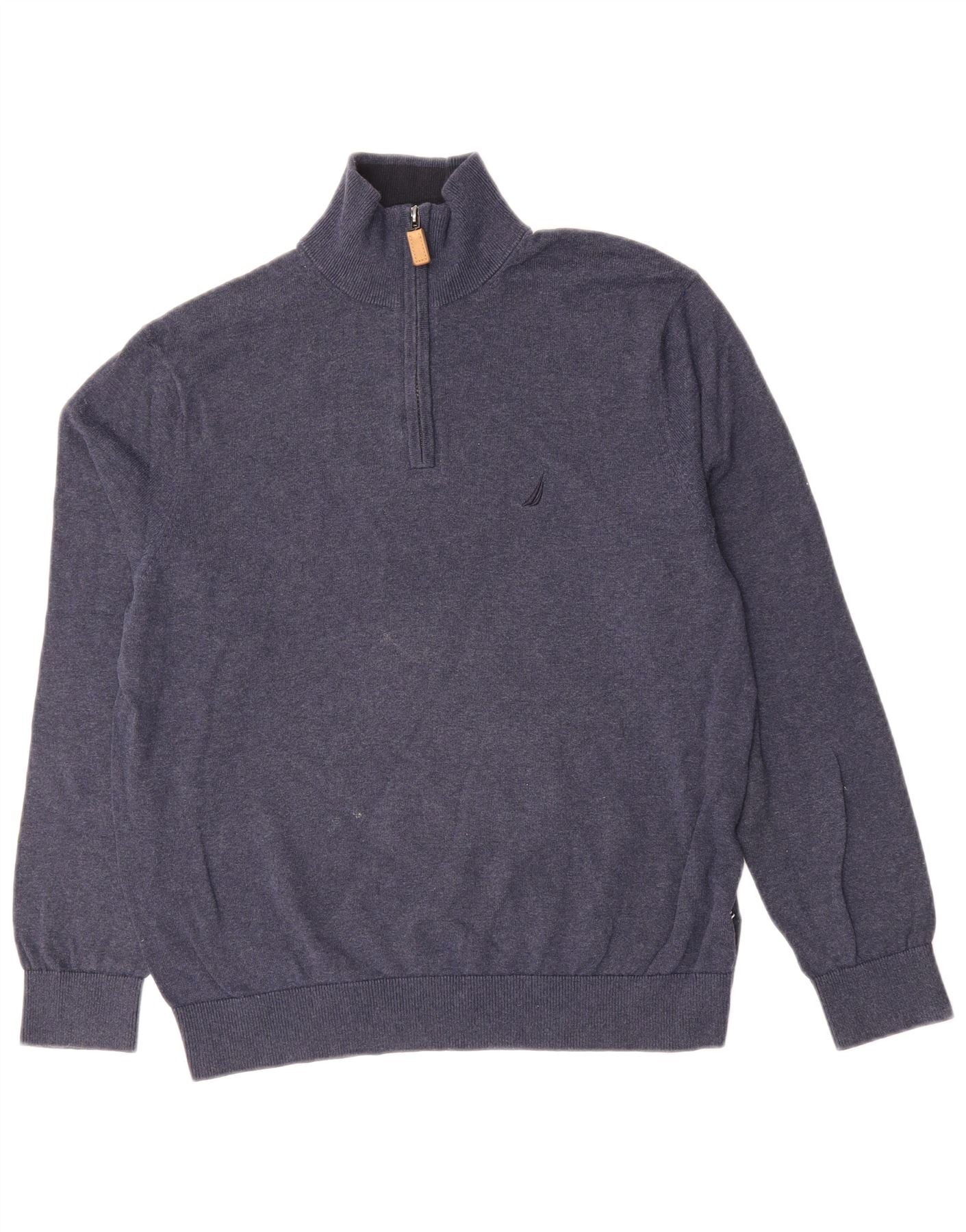 NAUTICA Mens Zip Neck Jumper Sweater Medium Navy Blue Cotton