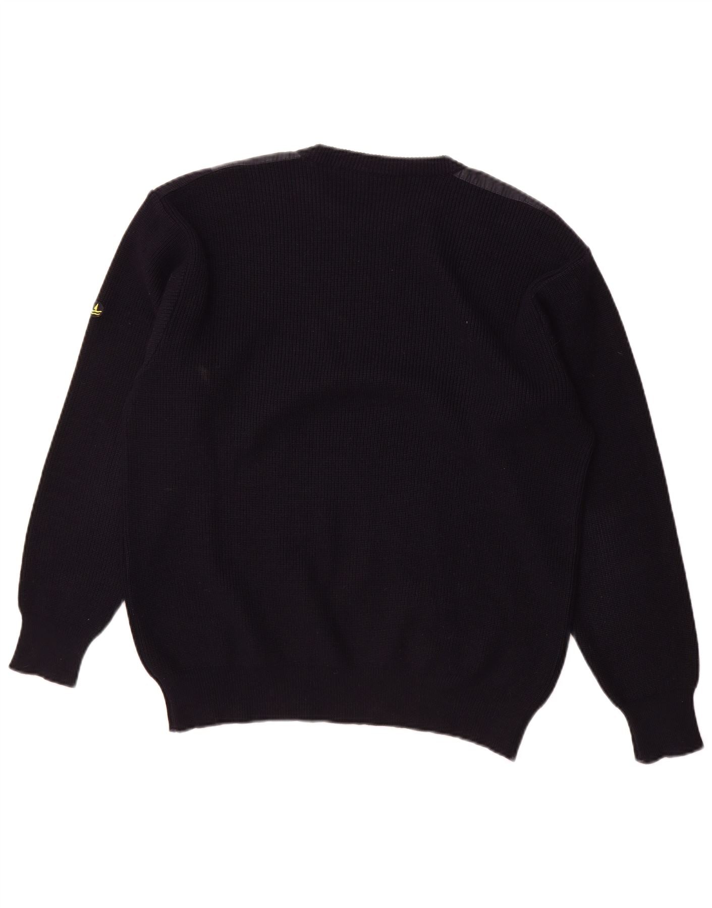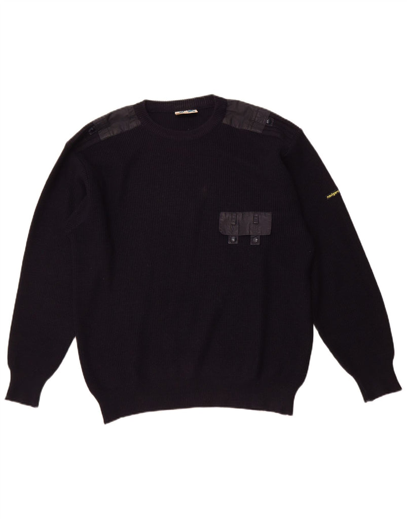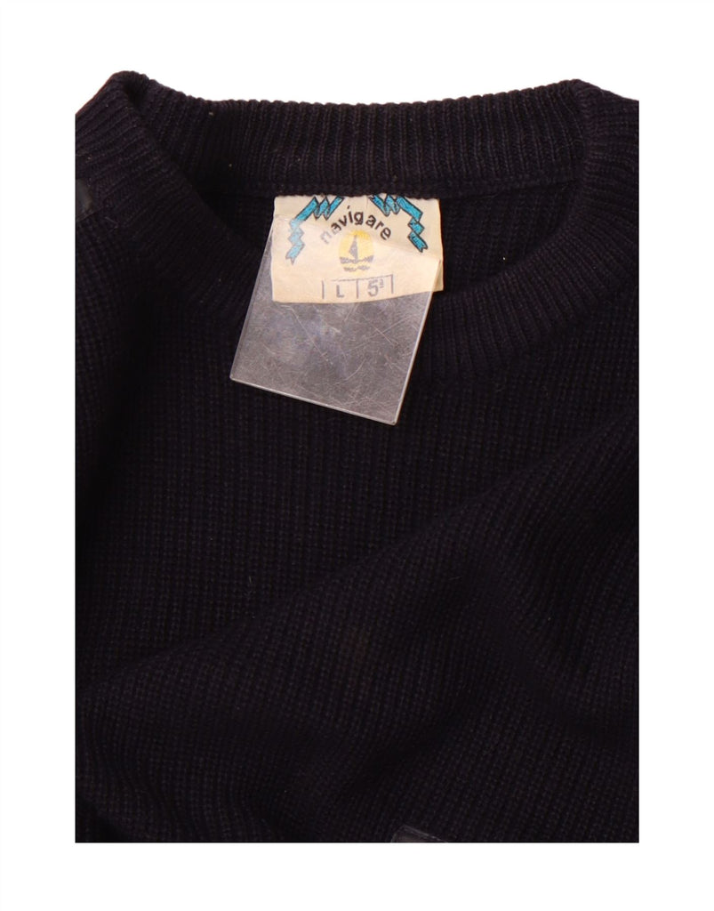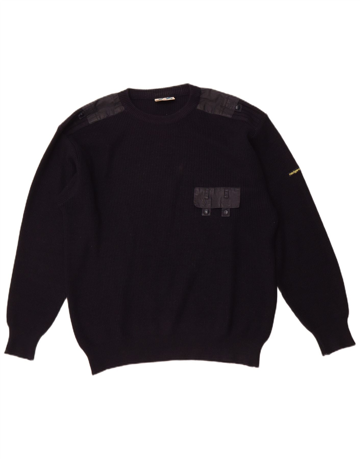 NAVIGARE Mens Crew Neck Jumper Sweater Large Navy Blue Wool