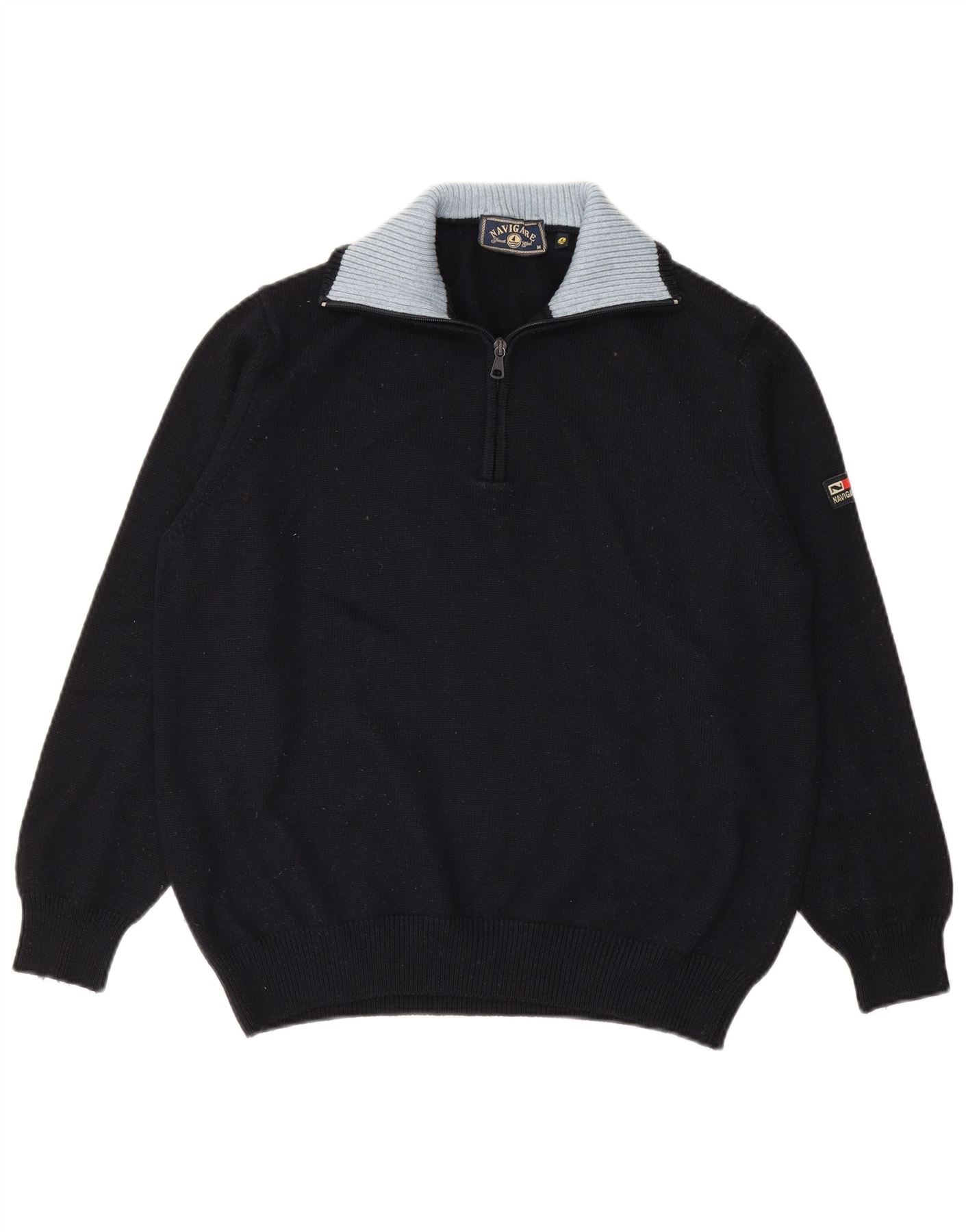 NAVIGARE Mens Zip Neck Jumper Sweater Medium Navy Blue Merino Wool