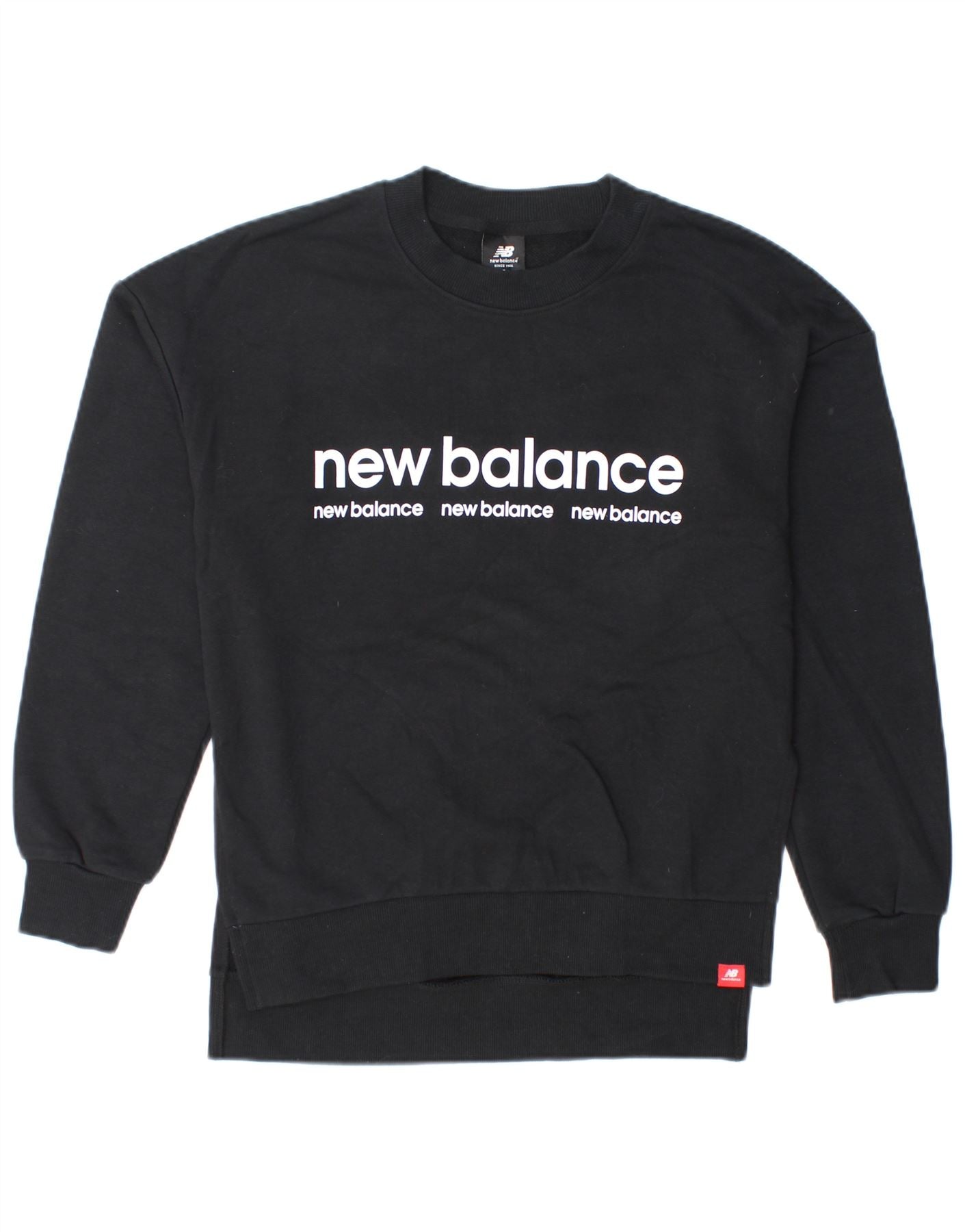 NEW BALANCE Mens Graphic Sweatshirt Jumper Small Black Colourblock Cotton