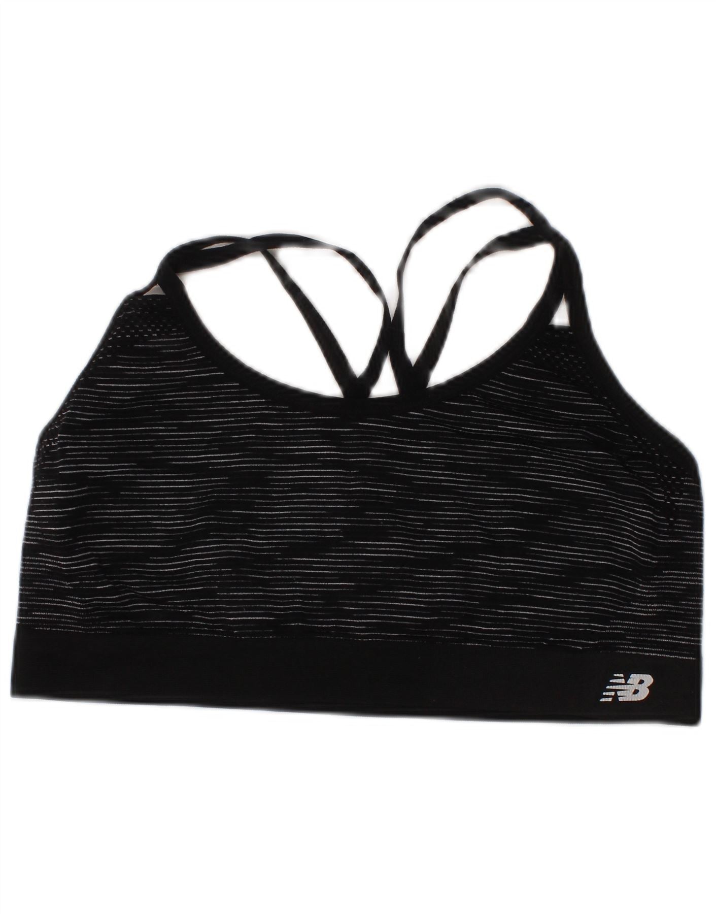 NEW BALANCE Womens Sport Bra Top Large Black Striped Nylon Sports