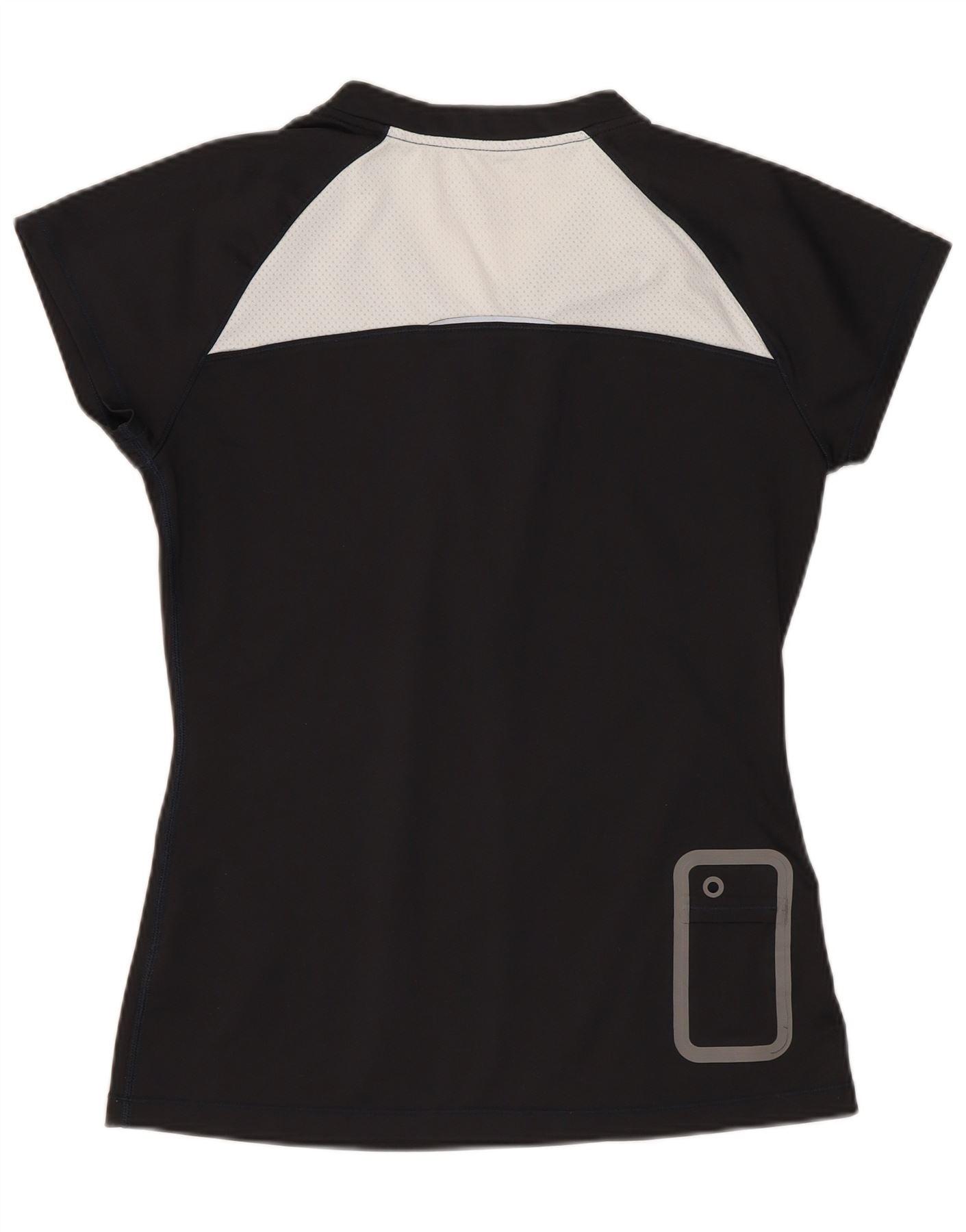 New Balance Womens T-Shirt Top UK 10 Small Black Colourblock Polyester