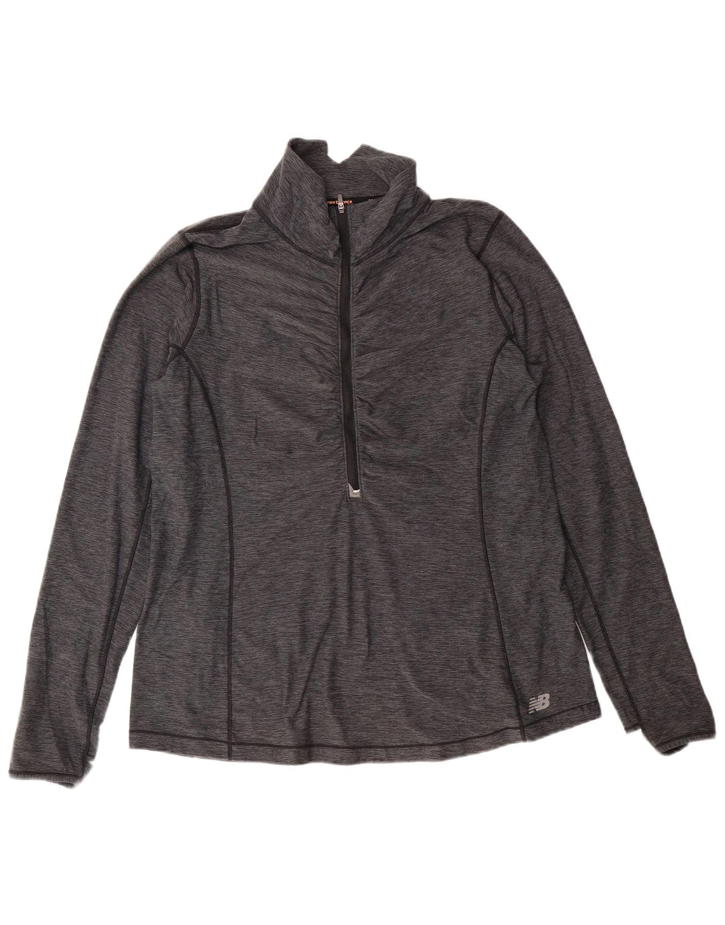 NEW BALANCE Womens Zip Neck Pullover Tracksuit Top UK 18 XL Grey Flecked