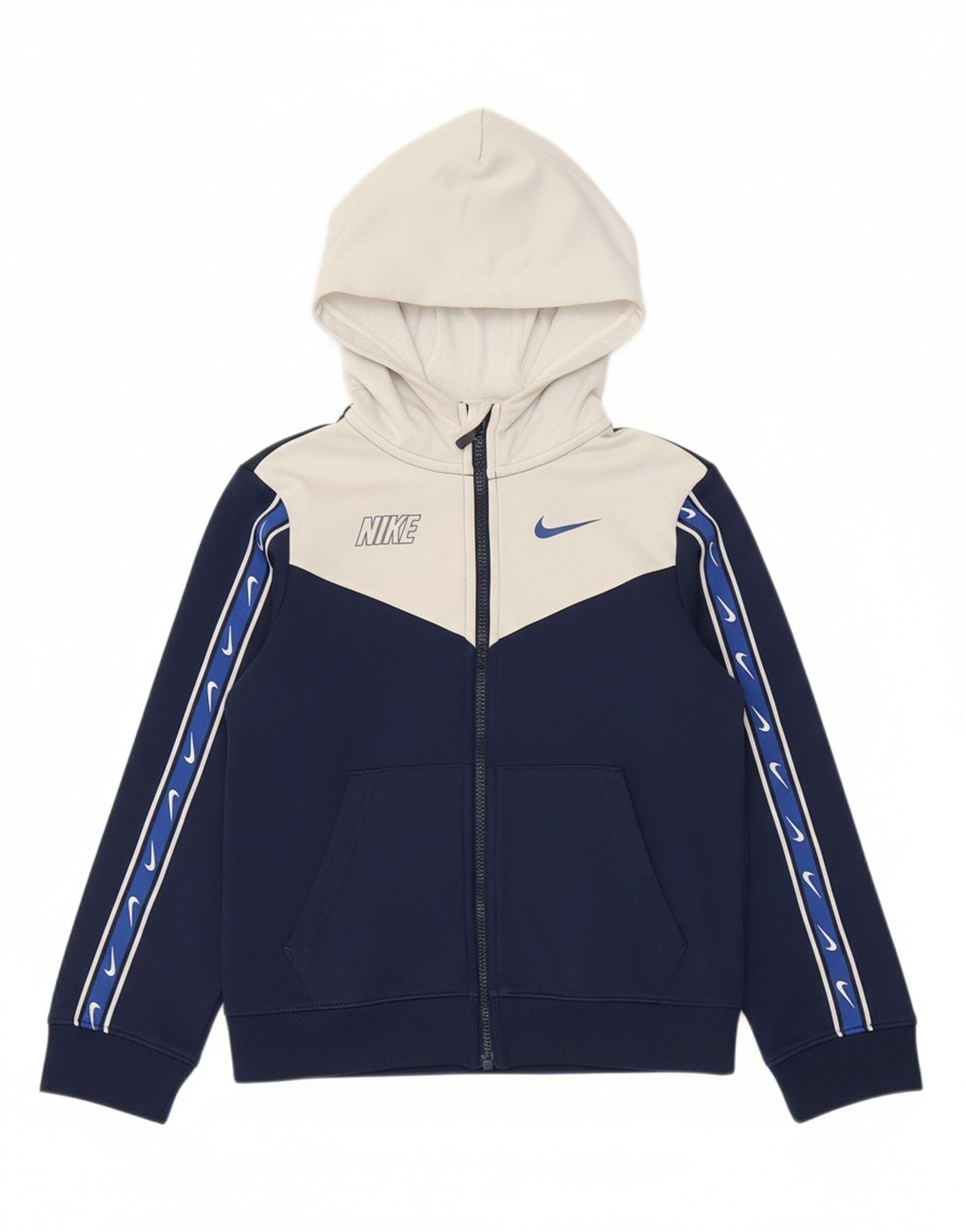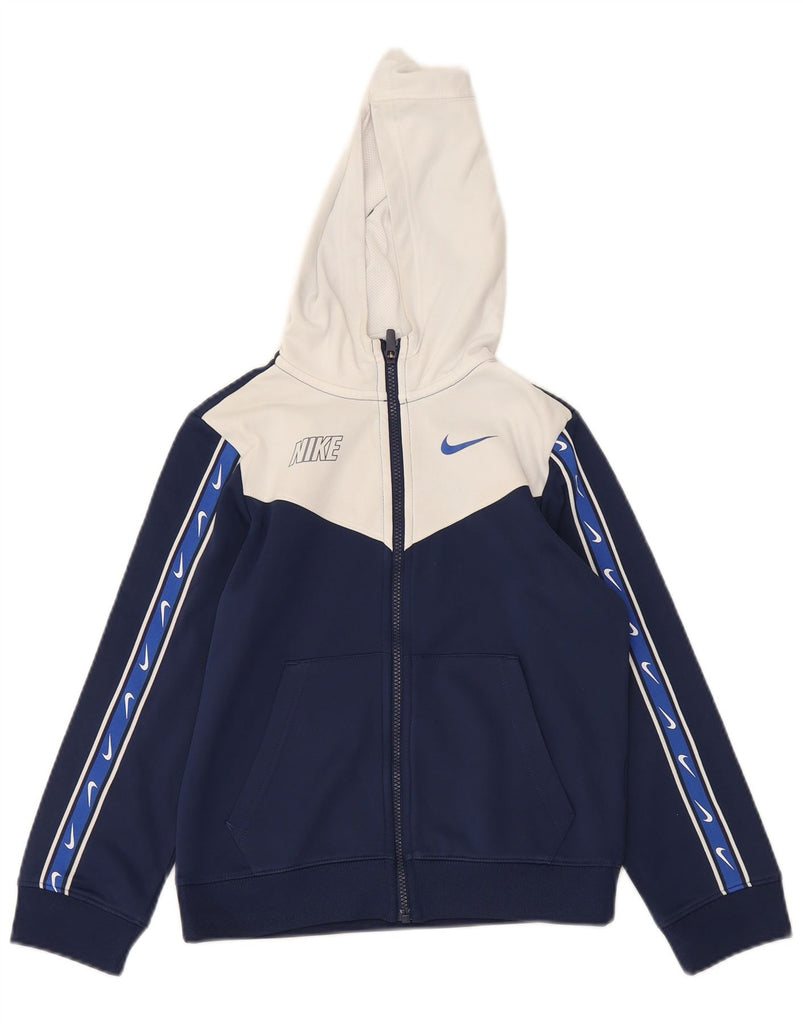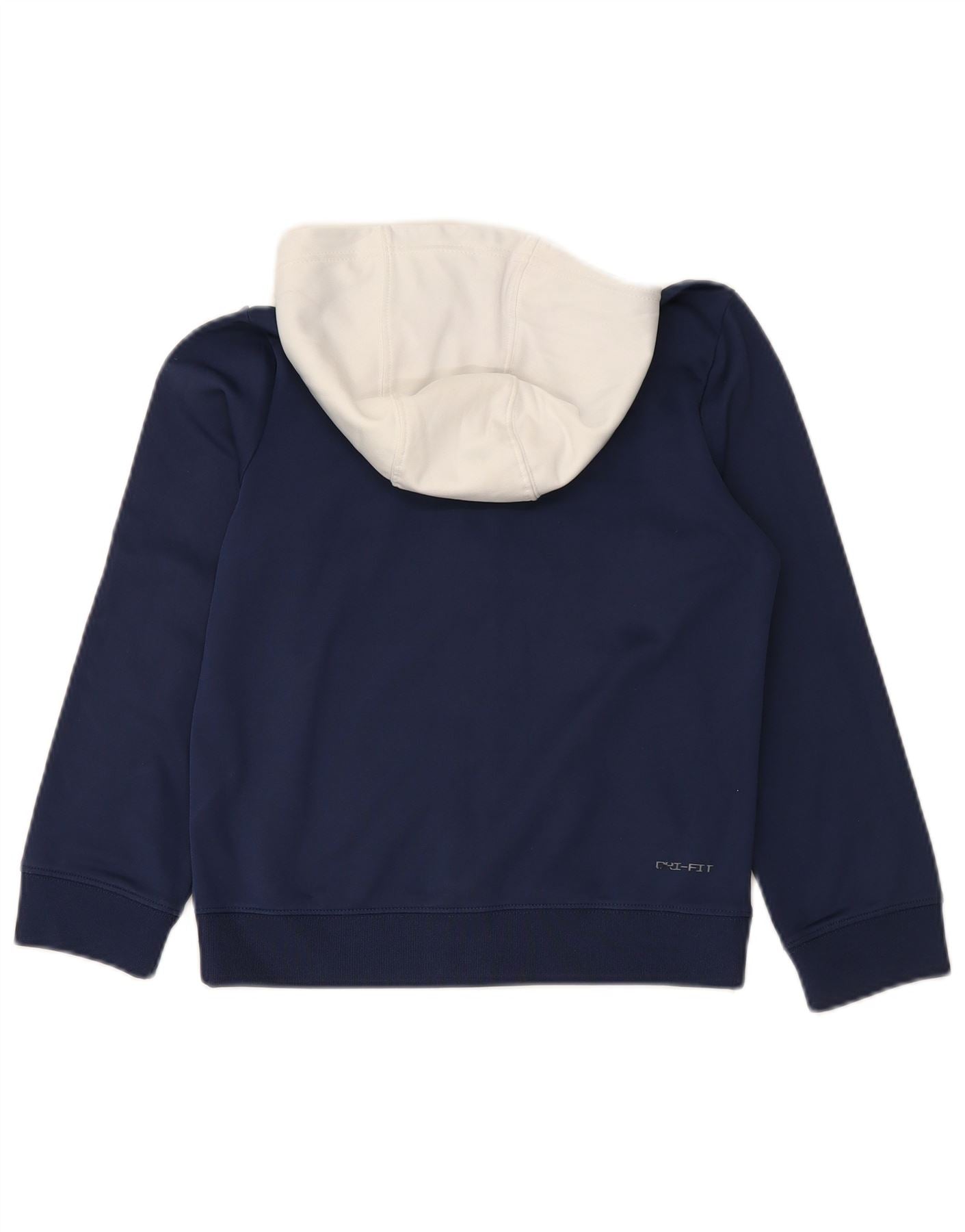 NIKE Boys Dri Fit Zip Hoodie Sweater 10-11 Years Medium Navy Blue