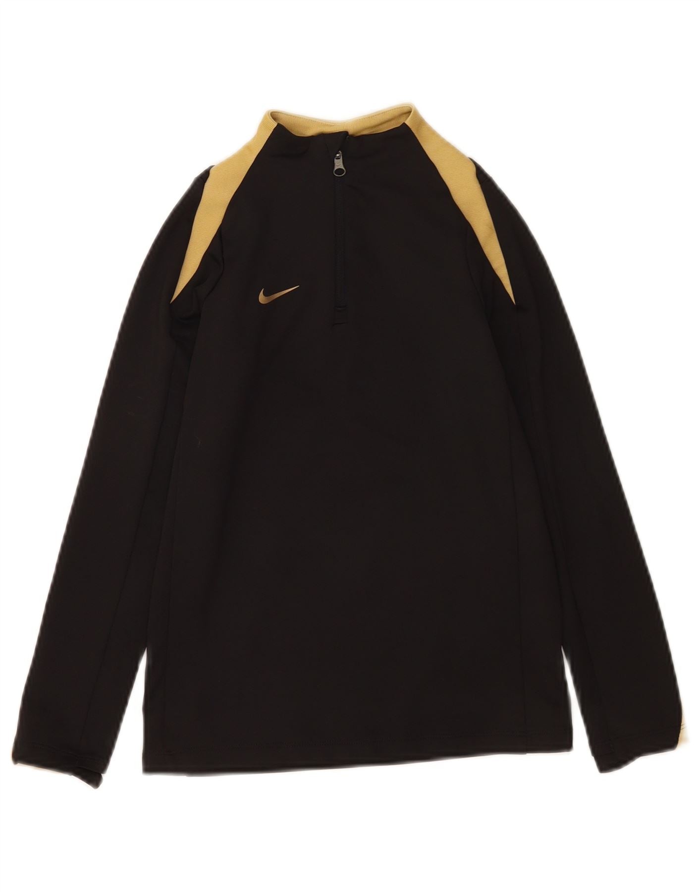 Nike Boys Dri Fit Zip Neck Pullover Tracksuit Top 8-9 Years Small Black