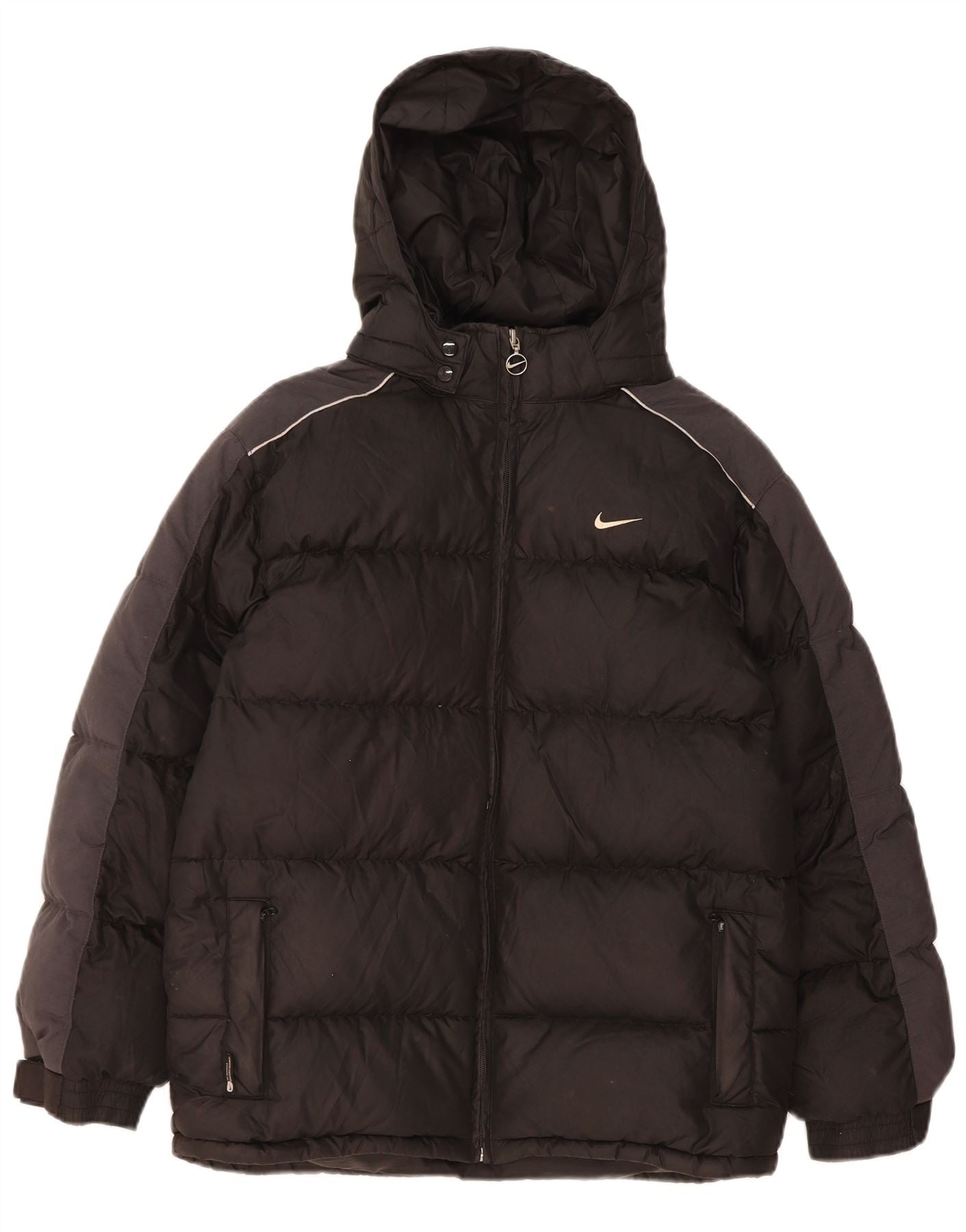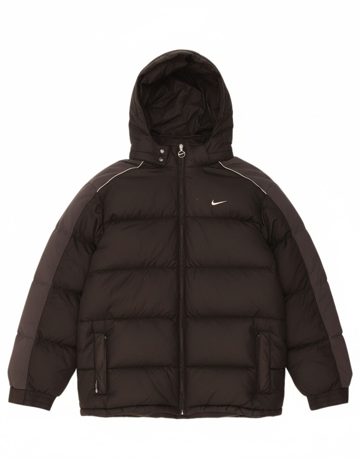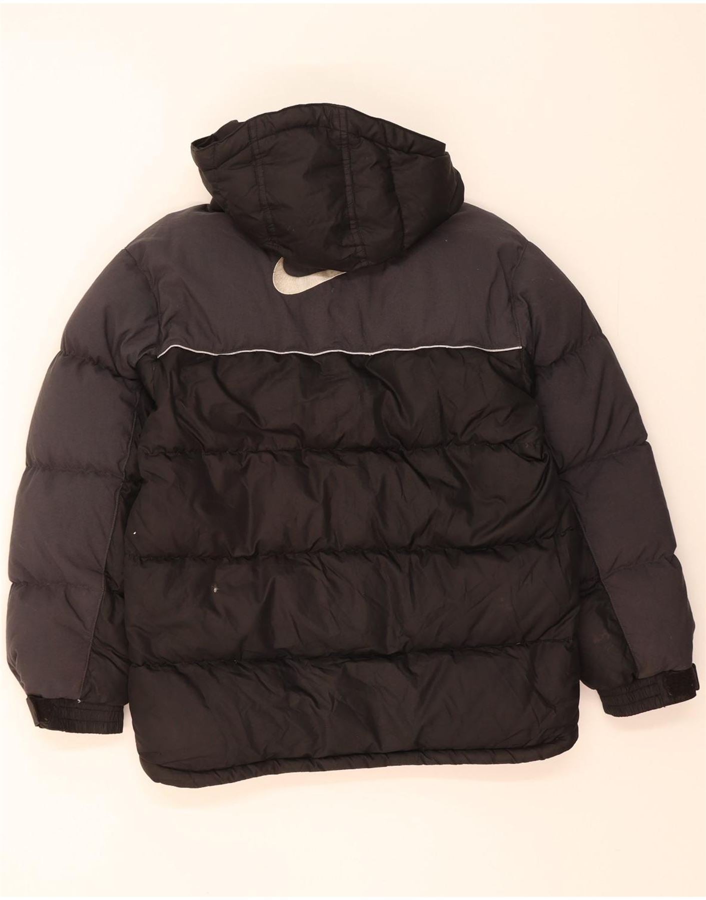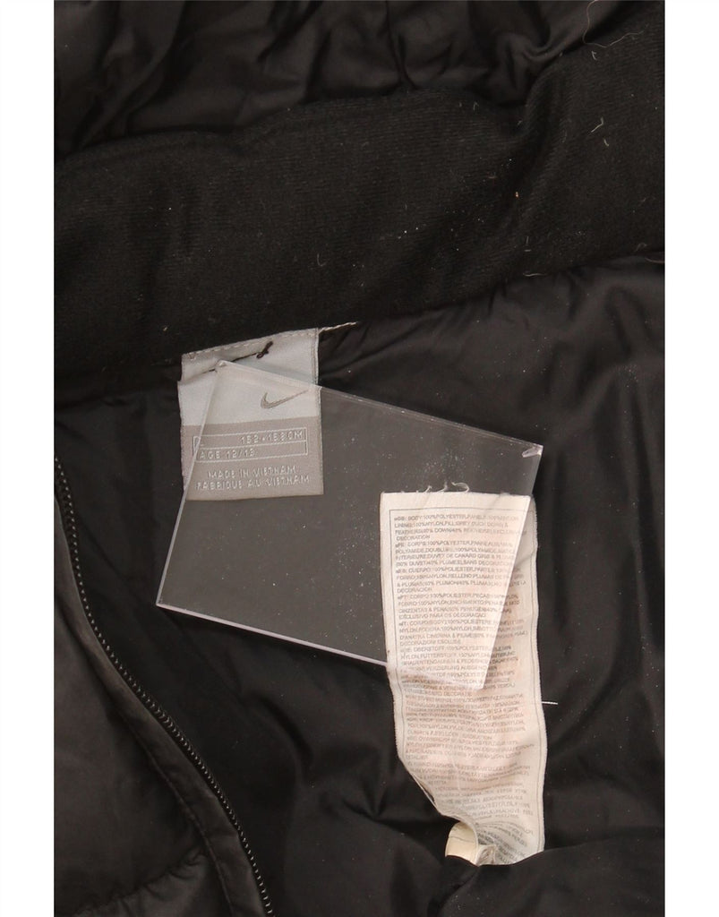 NIKE Boys Graphic Hooded Padded Jacket 12-13 Years Large Black Colourblock