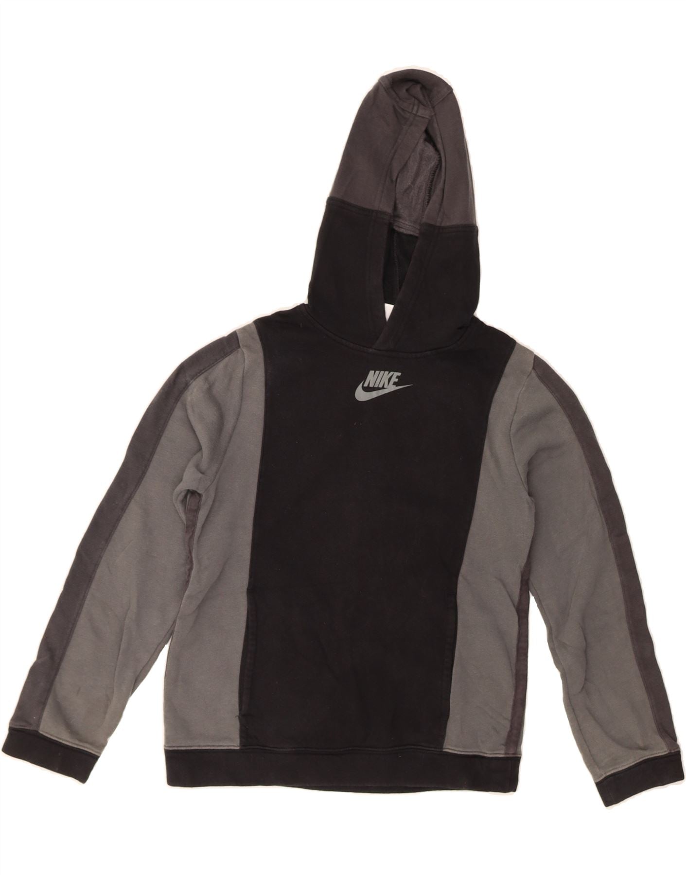 NIKE Boys Graphic Hoodie Jumper 12-13 Years Large Black Colourblock Cotton