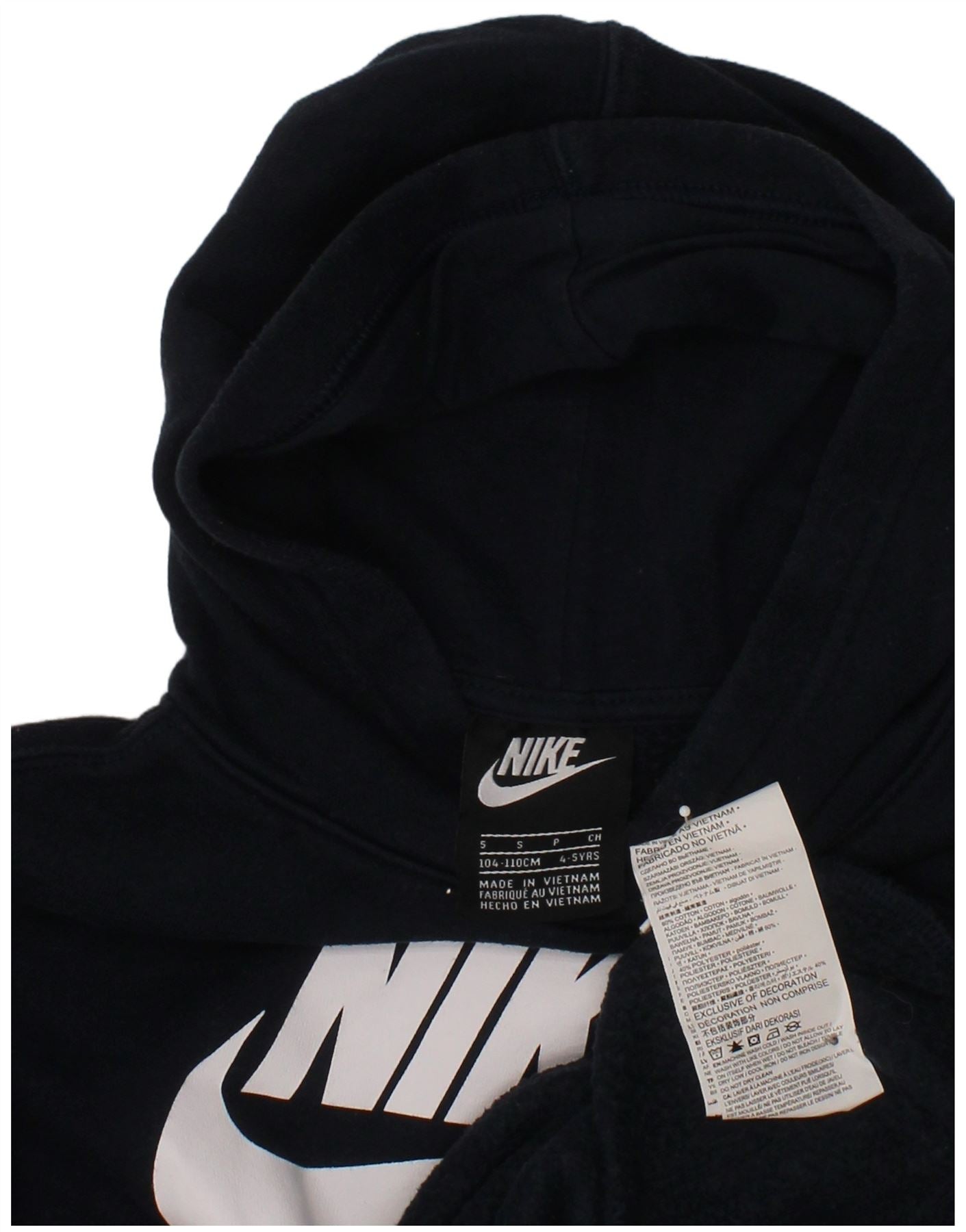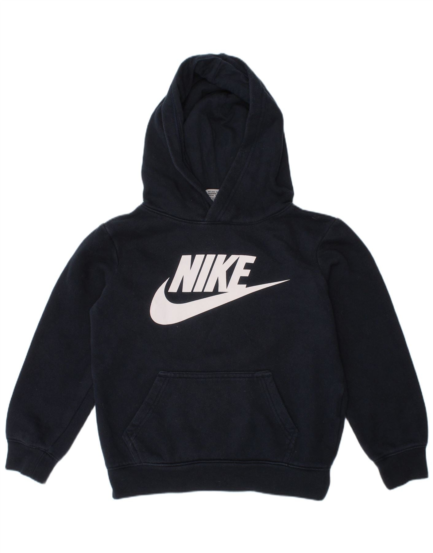 NIKE Boys Graphic Hoodie Jumper 4-5 Years Small Navy Blue Cotton