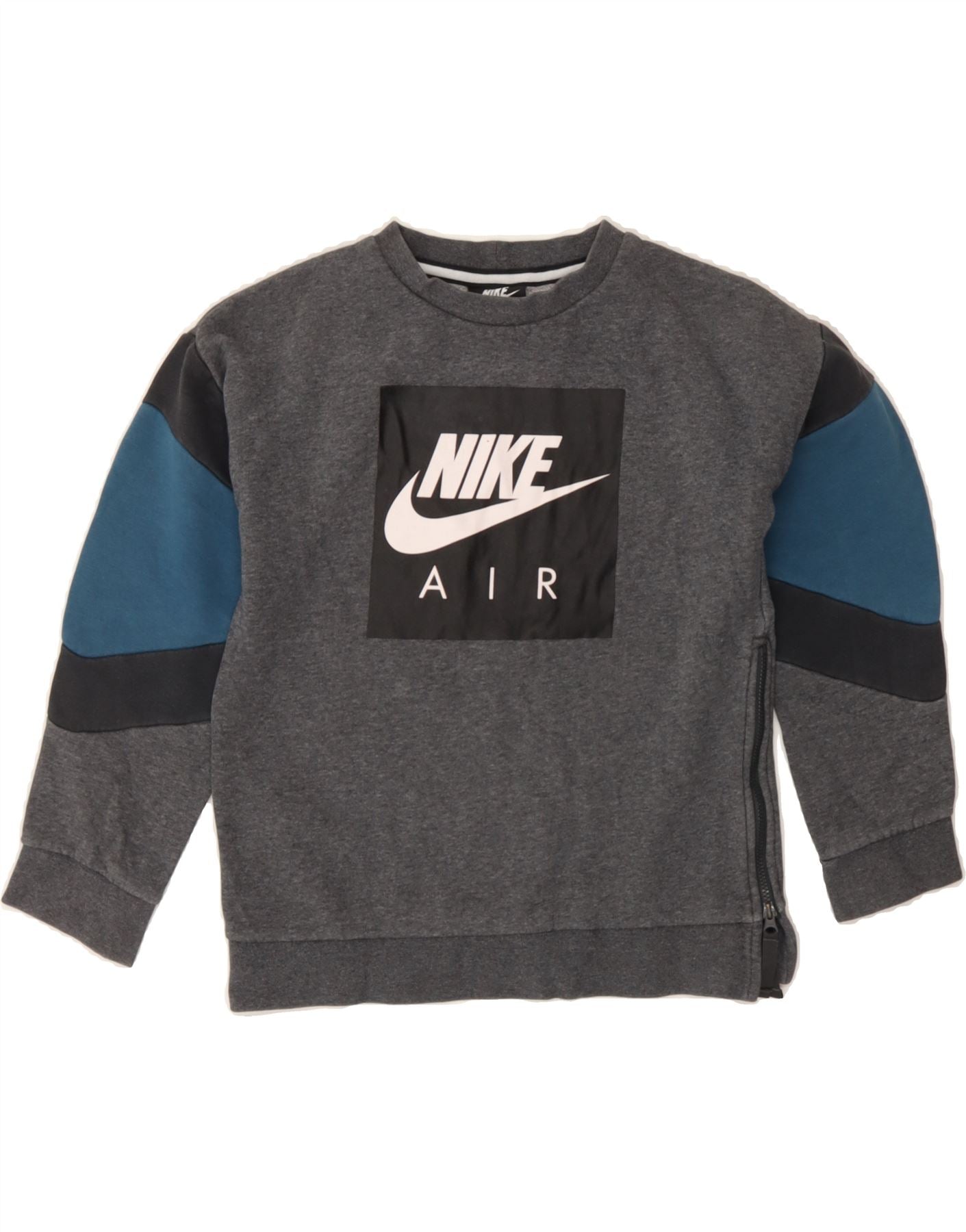 NIKE Boys Graphic Sweatshirt Jumper 10-11 Years Medium Grey Colourblock