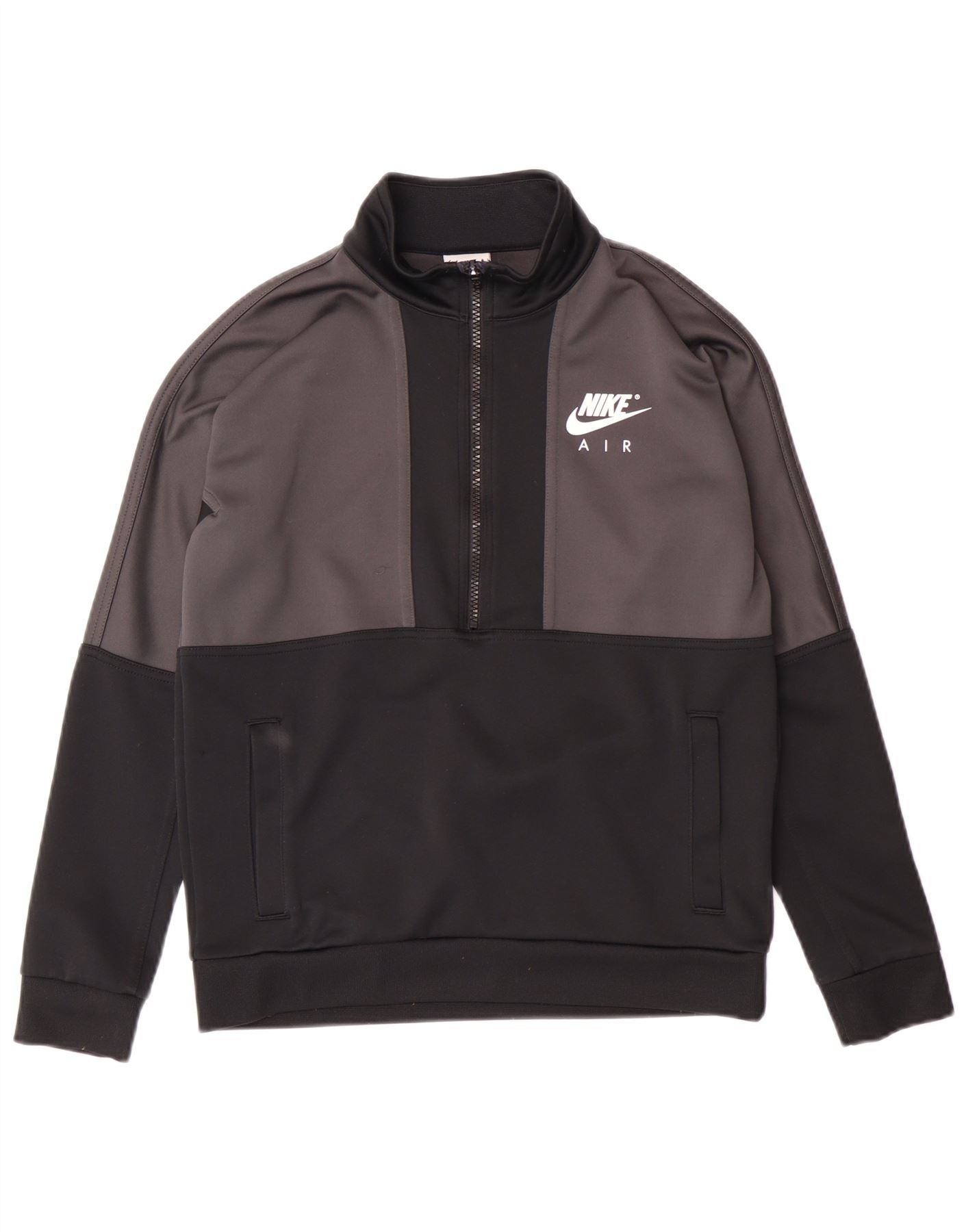 NIKE Boys Graphic Sweatshirt Jumper 12-13 Years Large Black Colourblock