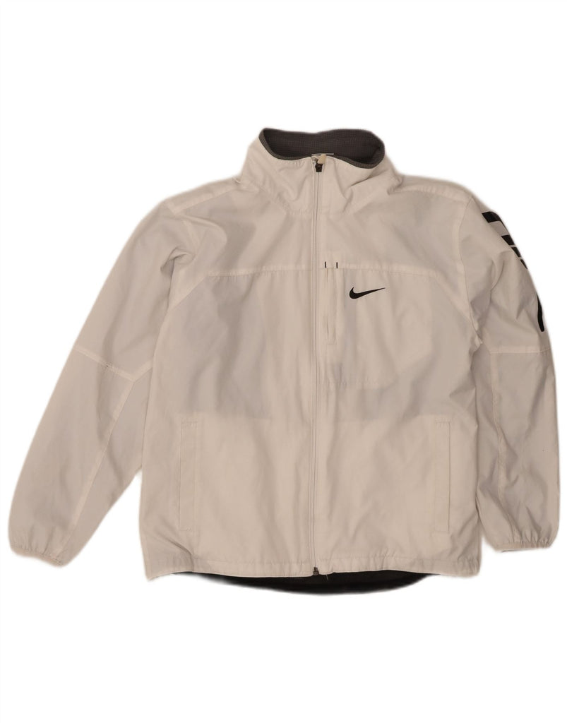 NIKE Boys Graphic Tracksuit Top Jacket 12-13 Years Large White Polyester