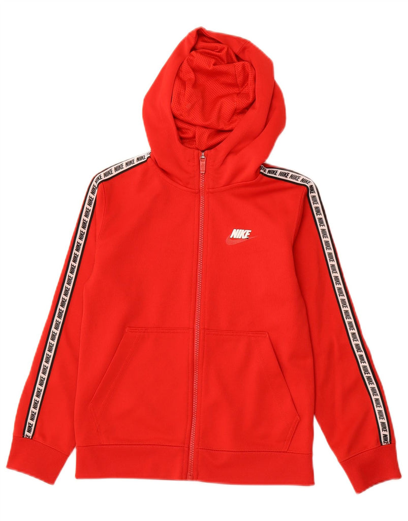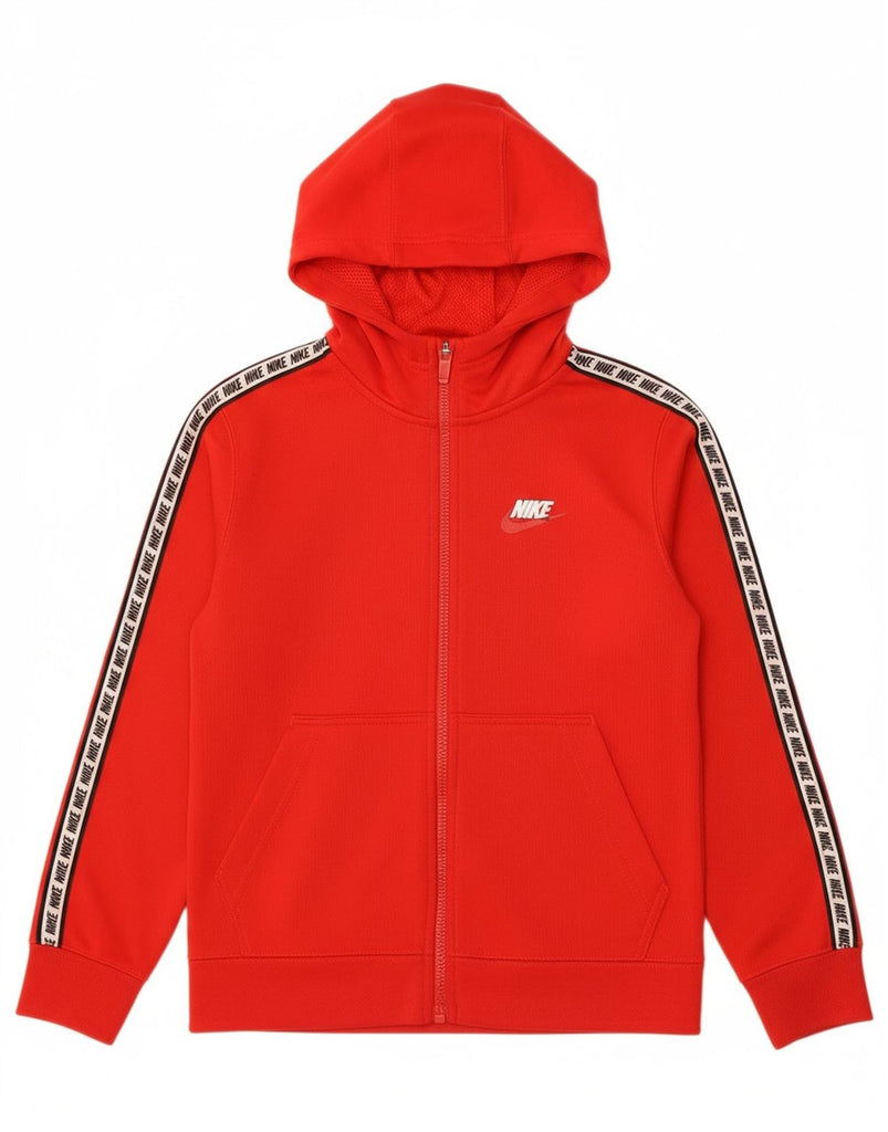 NIKE Boys Graphic Zip Hoodie Sweater 8-9 Years Small Red Polyester Sports
