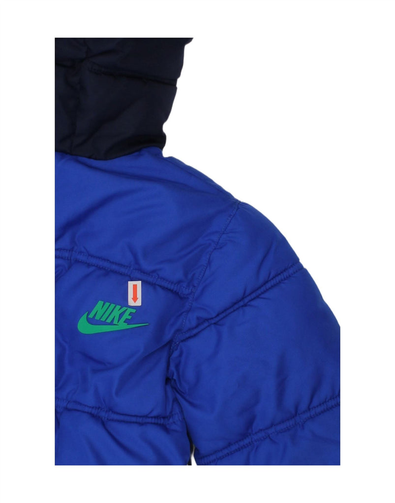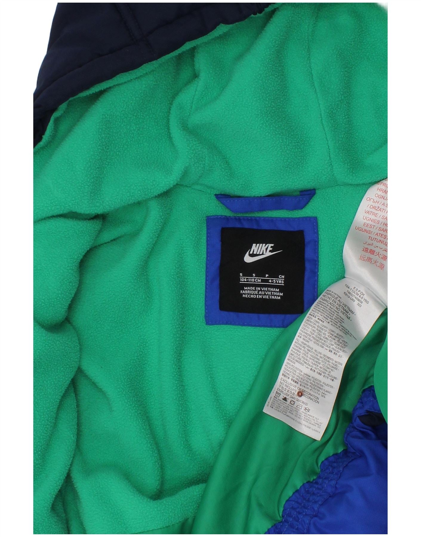 NIKE Boys Hooded Padded Jacket 4-5 Years Small Blue Colourblock Polyester