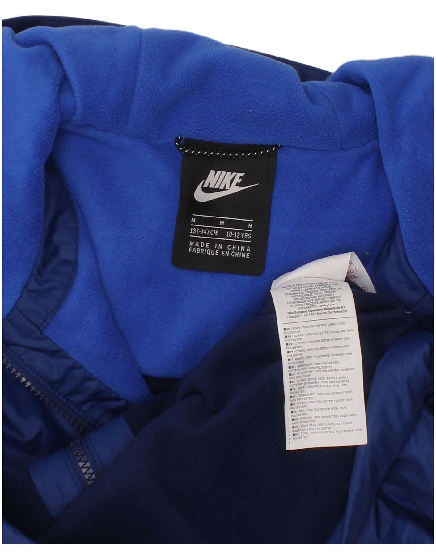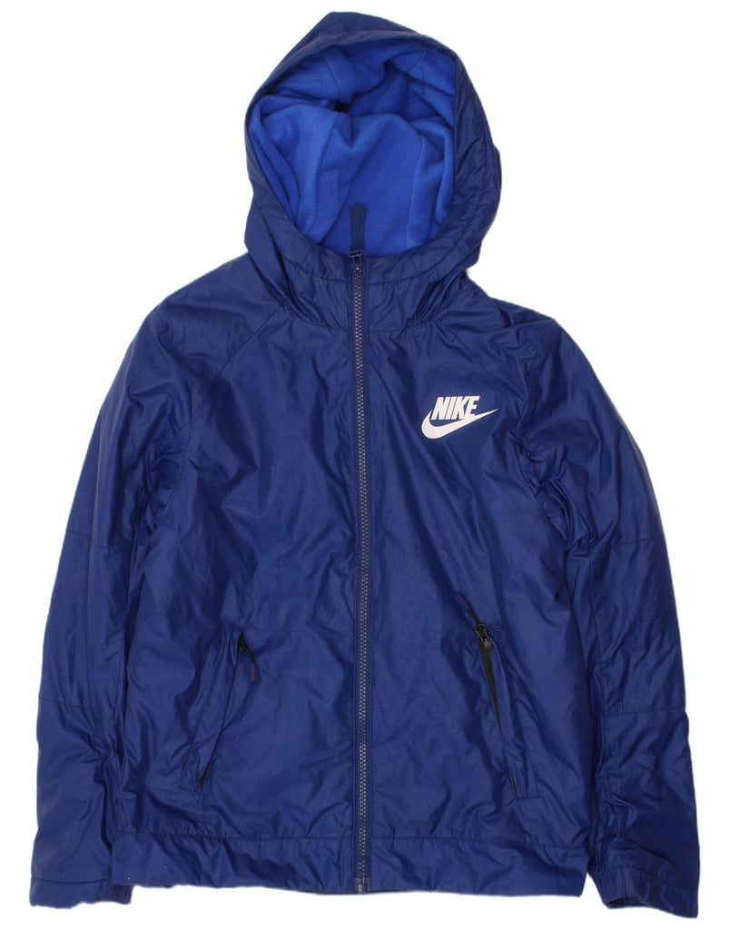 NIKE Boys Hooded Windbreaker Jacket 10-11 Years Medium Navy Blue Polyester