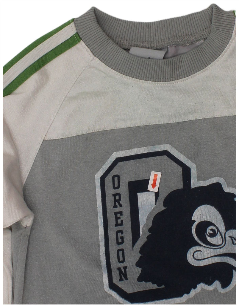 NIKE Boys Oregon Graphic Top Long Sleeve 5-6 Years Medium Grey Colourblock
