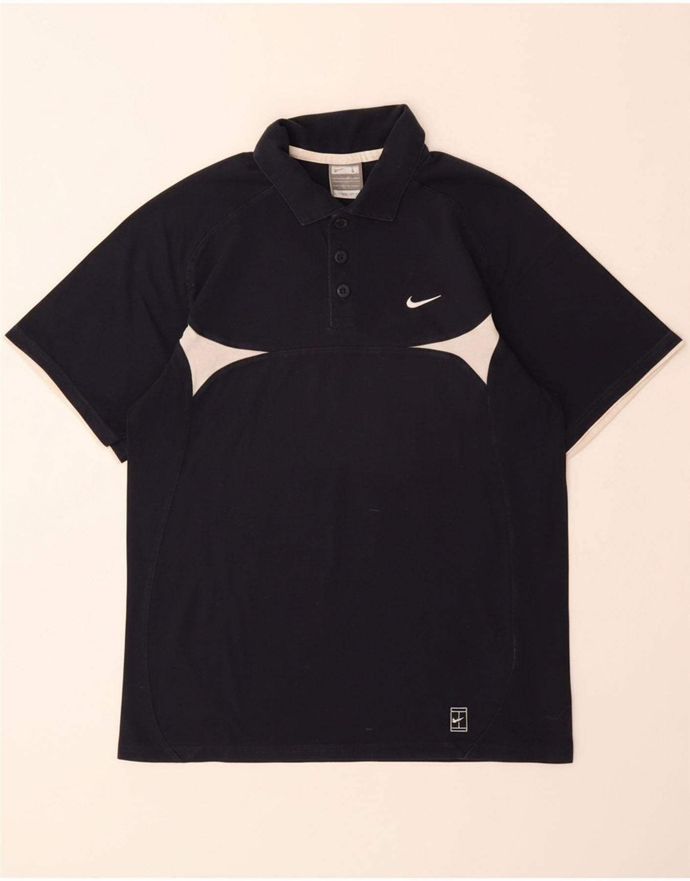 NIKE Boys Polo Shirt 12-13 Years Large Navy Blue Colourblock Cotton