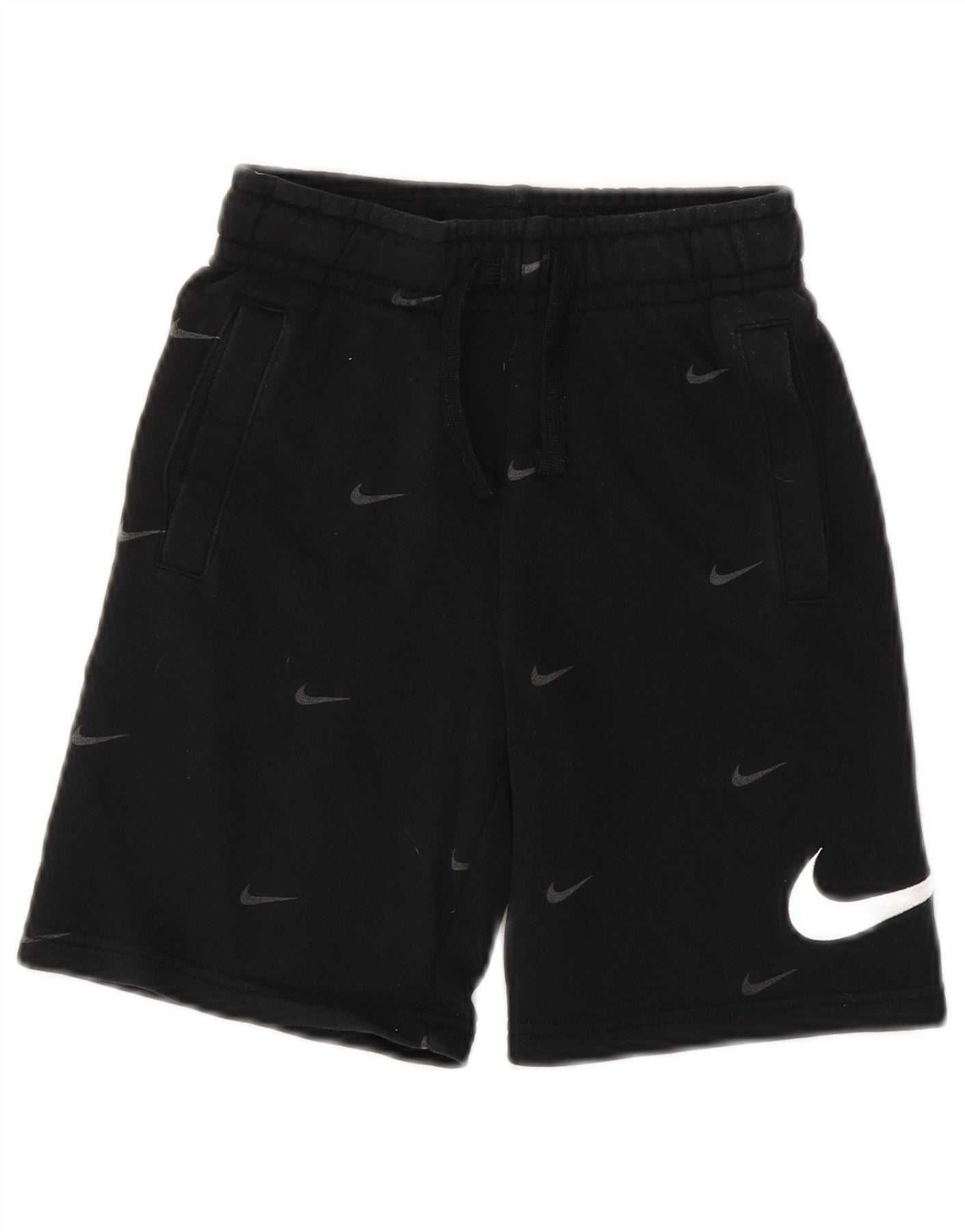 NIKE Boys Standard Fit Graphic Sport Shorts 8-9 Years Small Black Cotton