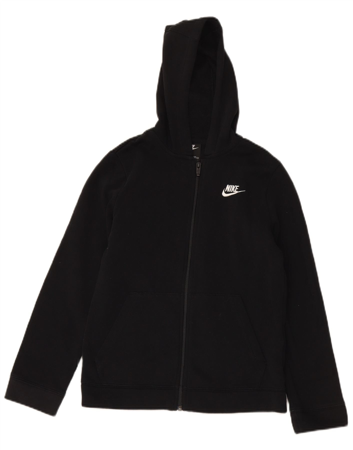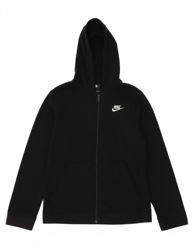 NIKE Boys Standard Fit Zip Hoodie Sweater 12-13 Years Large Black Cotton